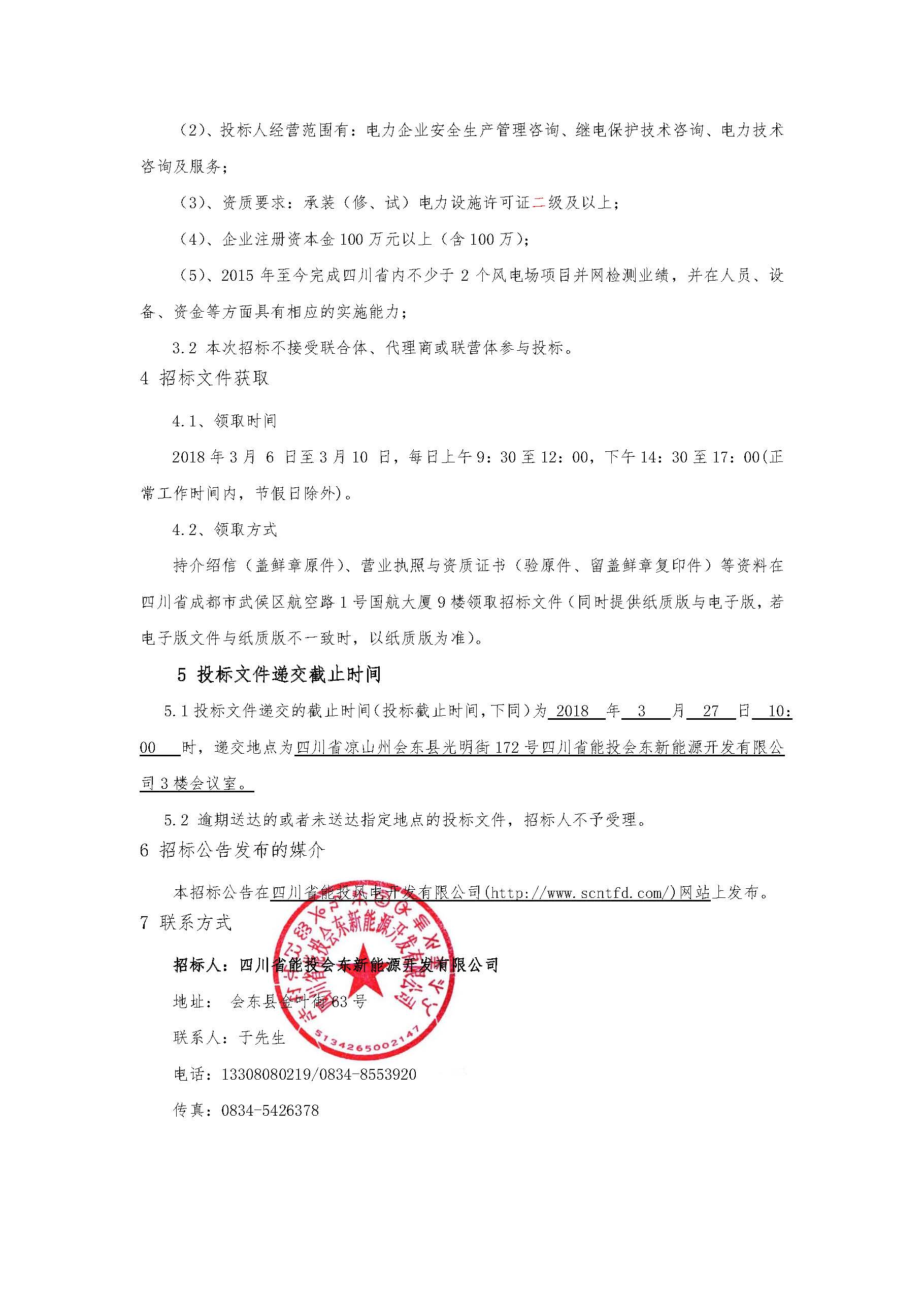 (5)、2015年至今完成四川省内不少于2个风电场项目并网检测业绩,并在人员、设备、资金等方面具有相应的实施能力;