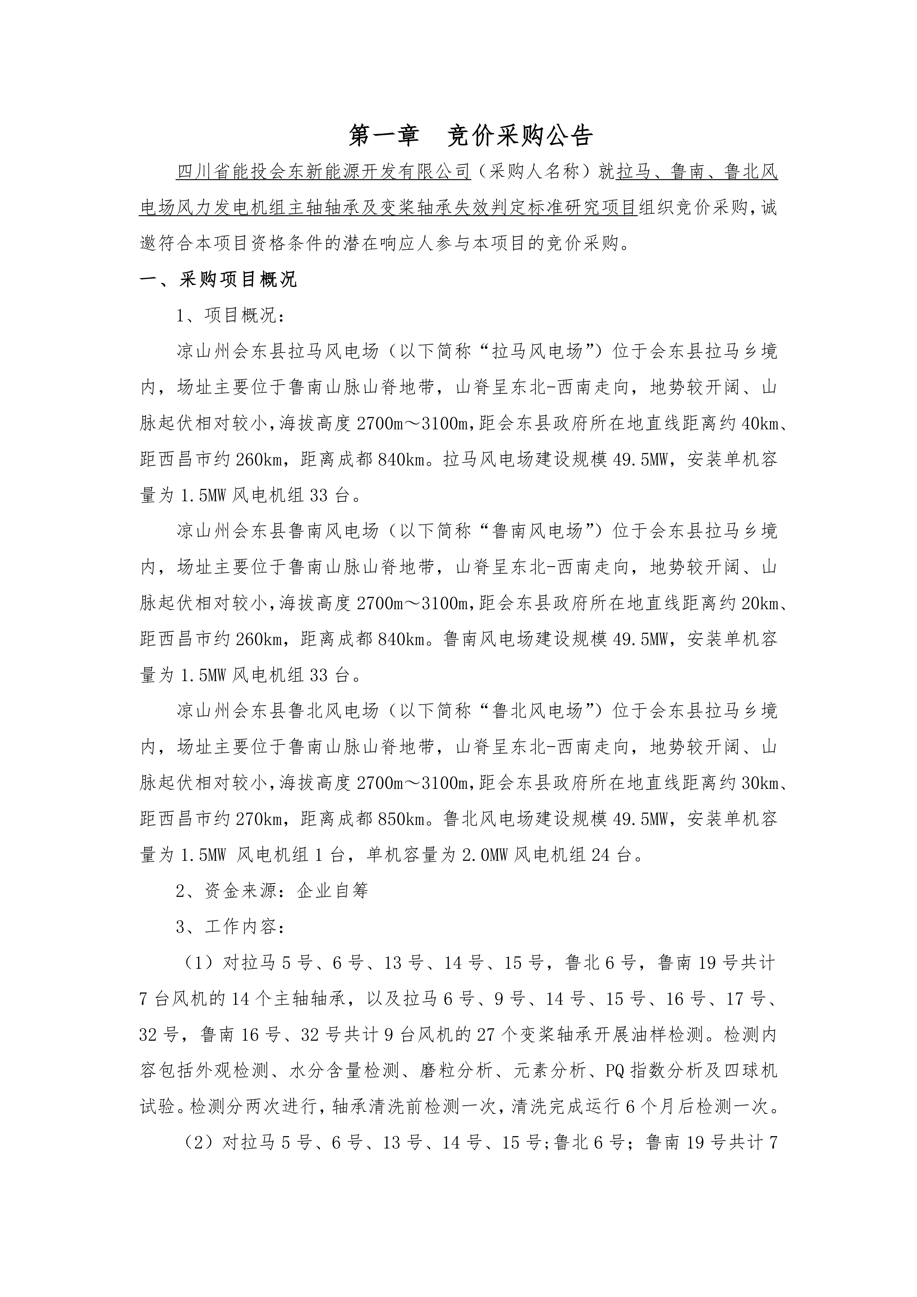 四川省能投会东新能源开发有限公司(采购人名称)就拉马、鲁南、鲁北风电场风力发电机组主轴轴承及变桨轴承失效判定标准研究项目组织竞价采购,诚邀符合本项目资格条件的潜在响应人参与本项目的竞价采购。