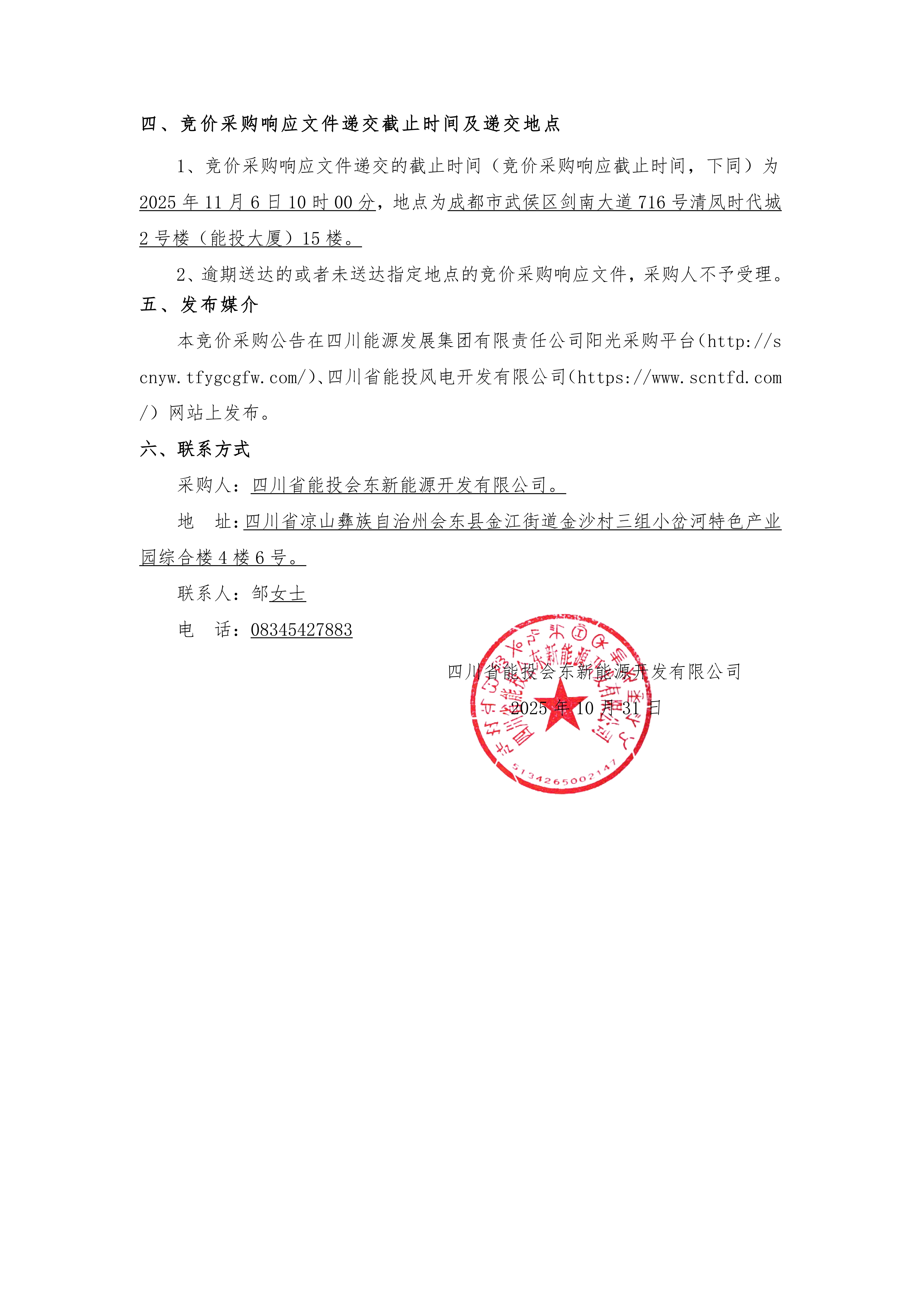 1、竞价采购响应文件递交的截止时间(竞价采购响应截止时间,下同)为2025年11月6日10时00分,地点为成都市武侯区剑南大道716号清凤时代城2号楼(能投大厦)15楼。