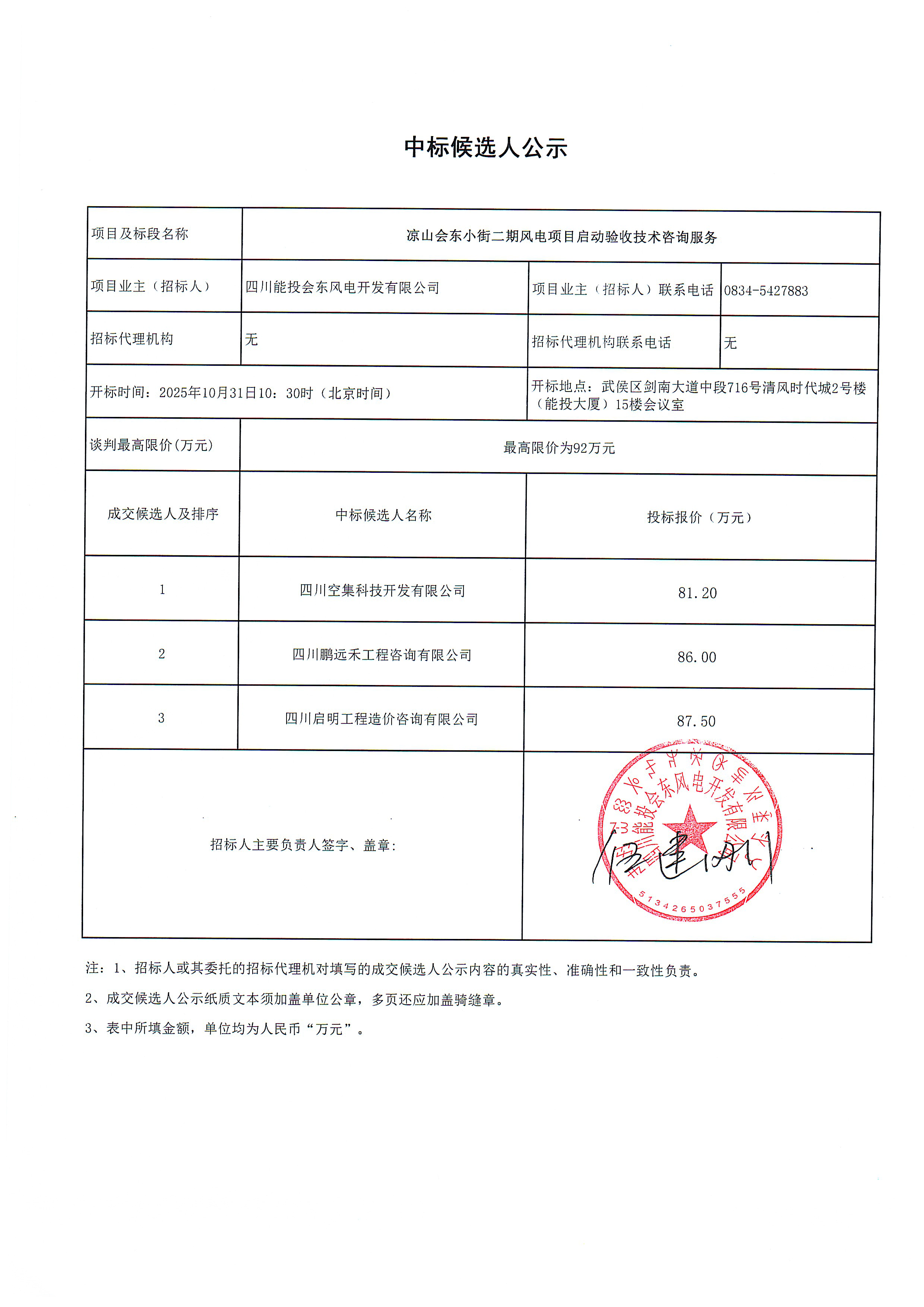 下一条:四川能投会东风电开发有限公司关于凉山会东堵格二期风电项目启动验收技术咨询服务的中标候选人公示