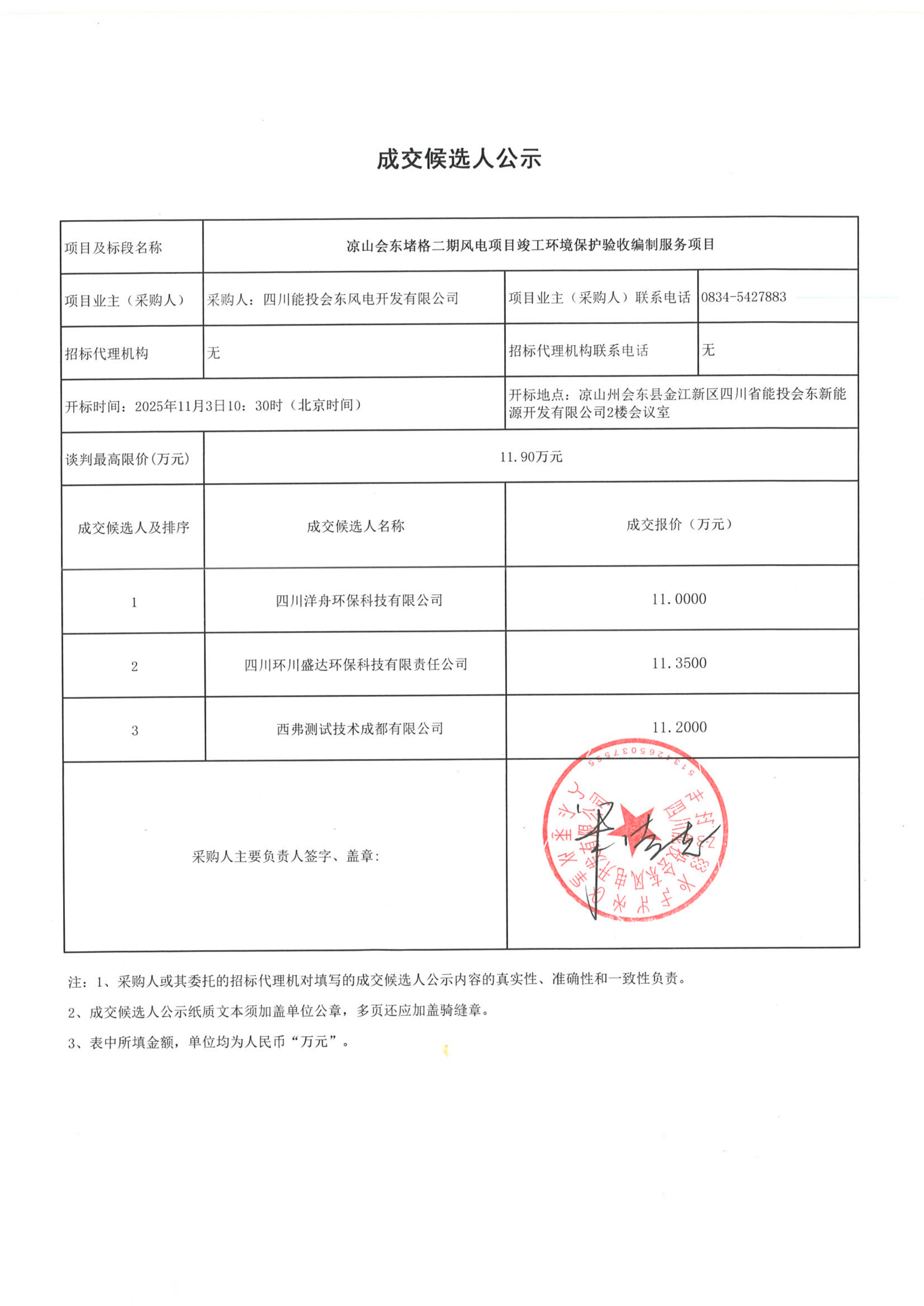 上一条:四川能投会东风电开发有限公司关于凉山会东小街二期风电项目峻工环境保护验收编制服务项目的成交候选人公示
