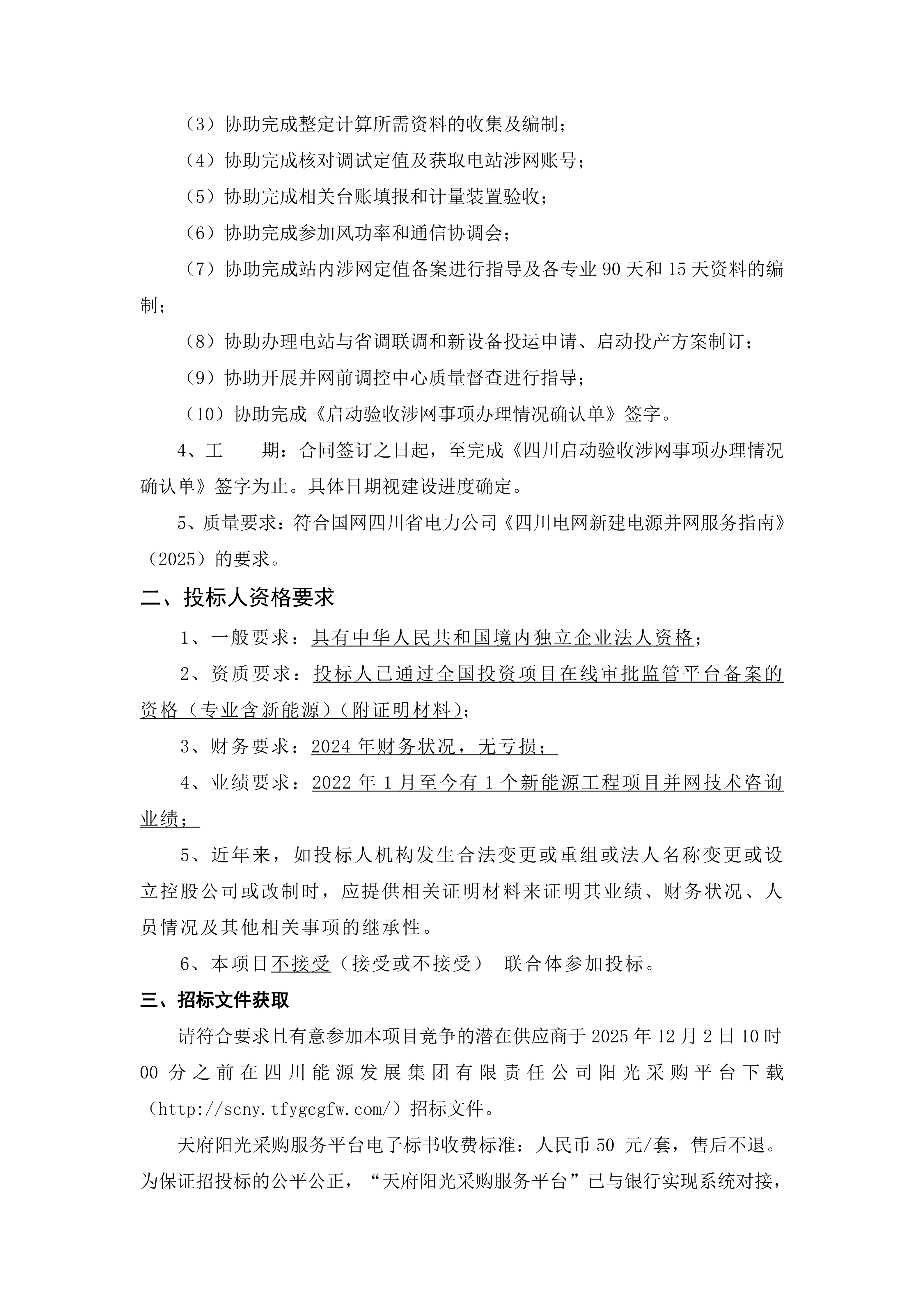 5、质量要求:符合国网四川省电力公司《四川电网新建电源并网服务指南》(2025)的要求。