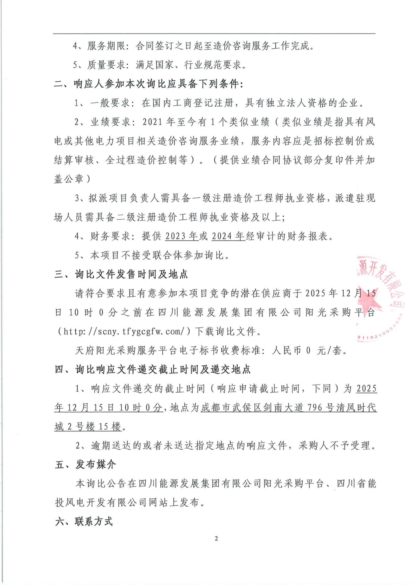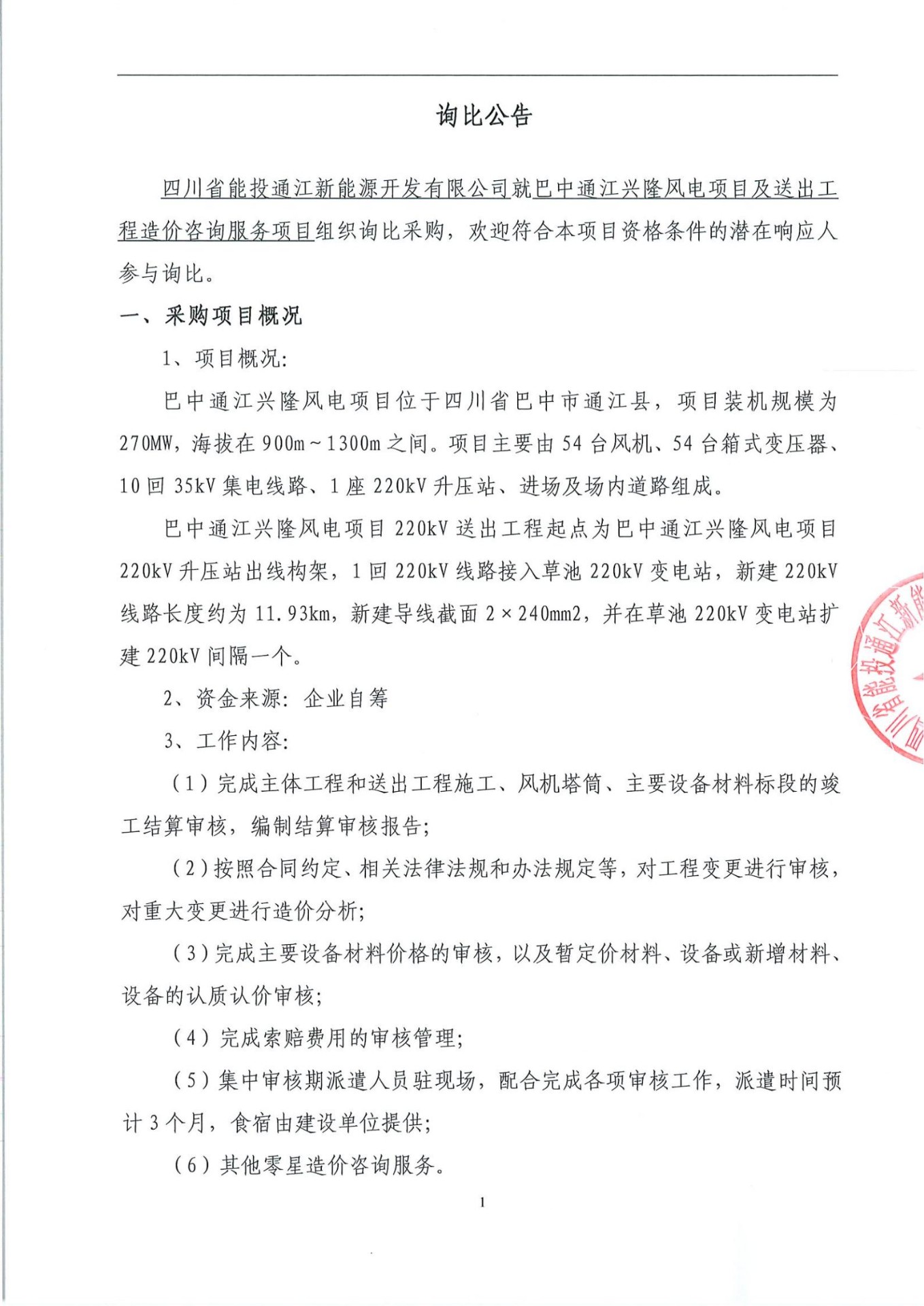 四川省能投通江新能源开发有限公司就巴中通江兴隆风电项目及送出工程造价咨询服务项目组织询比采购,欢迎符合本项目资格条件的潜在响应人参与询比。