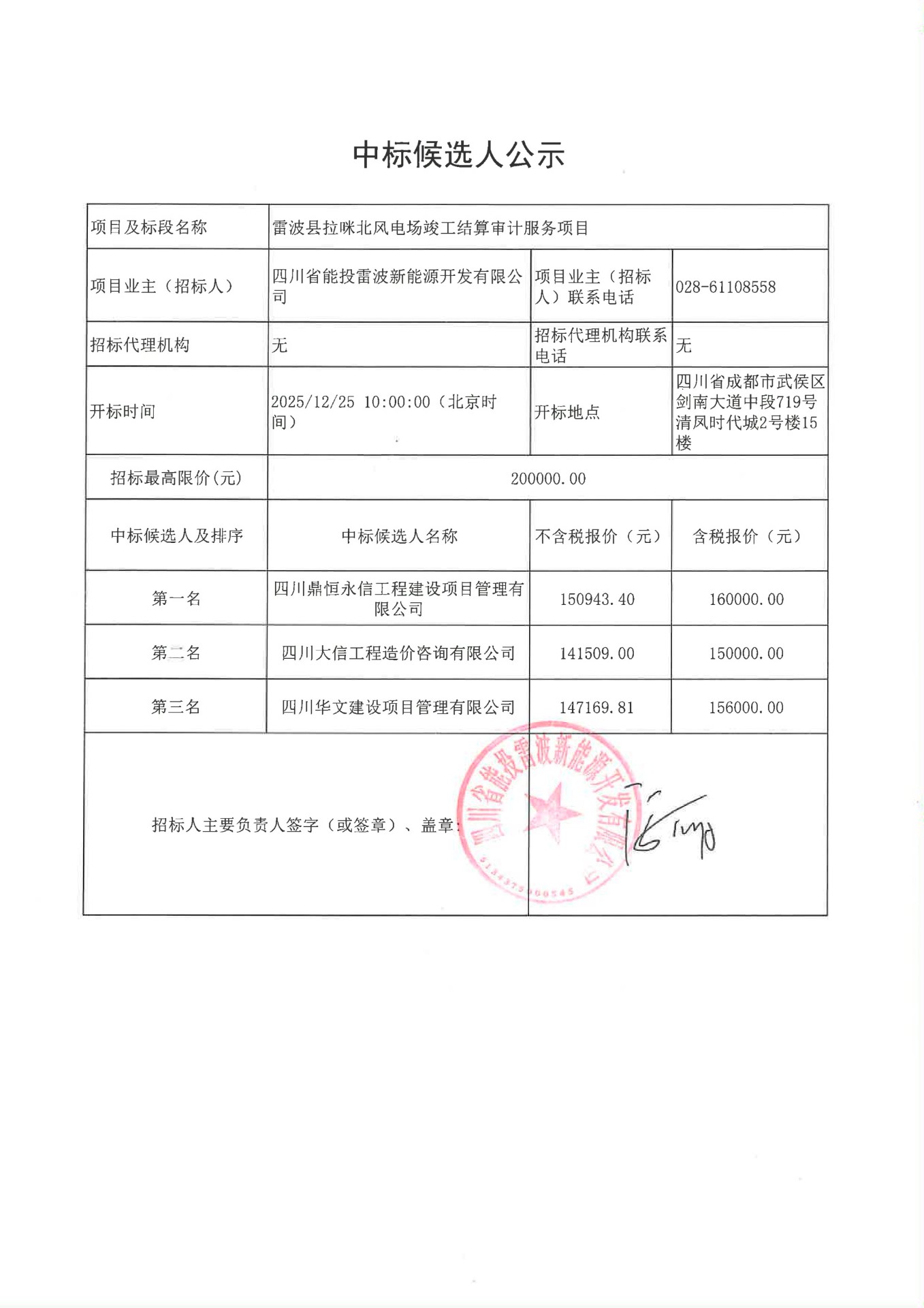 下一条:四川省能投雷波新能源开发有限公司关于雷波县拉咪北风电场工财务决算审计服务项目的中标候选人公示