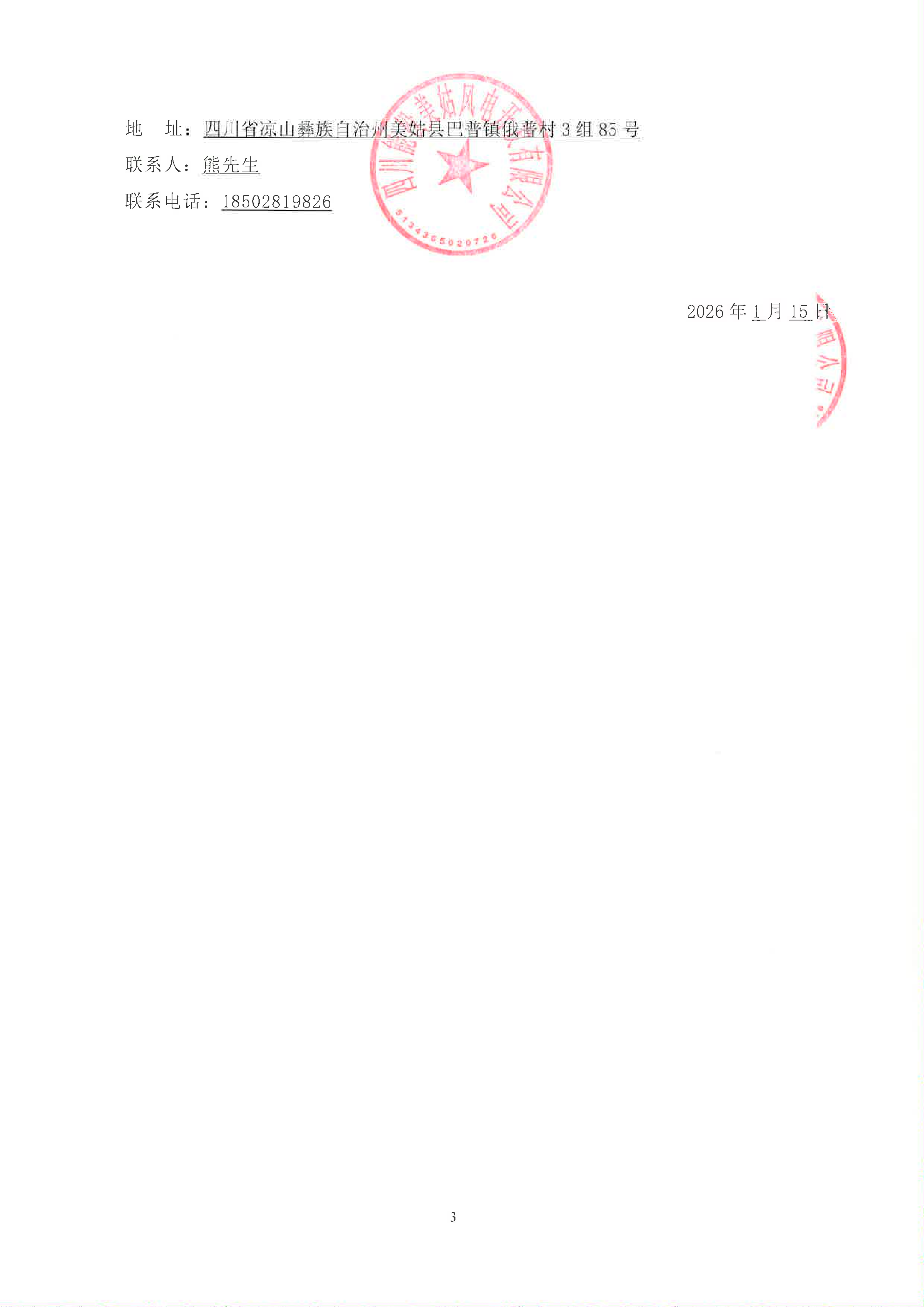 地 址:四川省凉山彝族自治州美姑县巴普镇俄普村3组85号