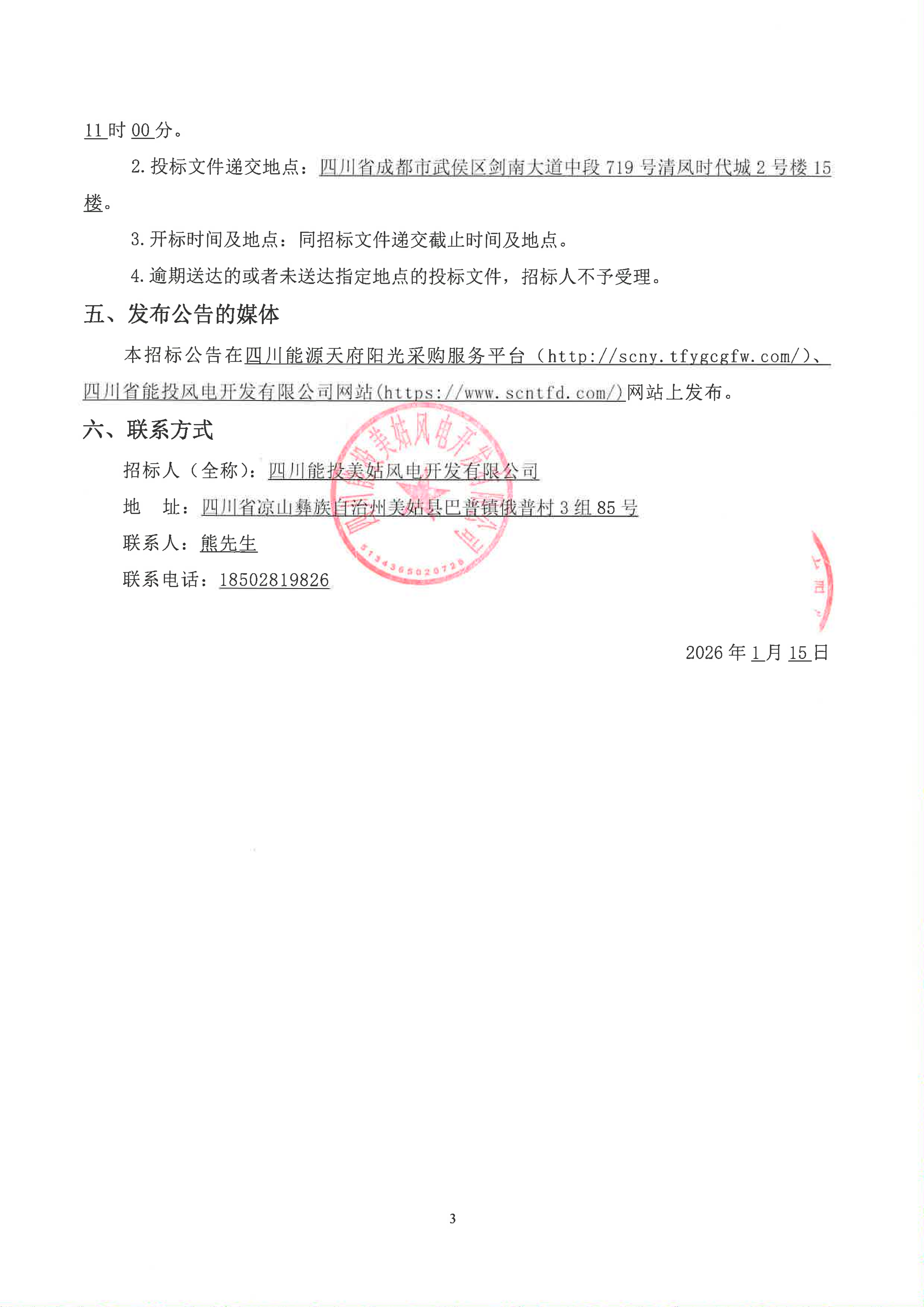 招标人(全称):四川能投美姑风电开发有限公司