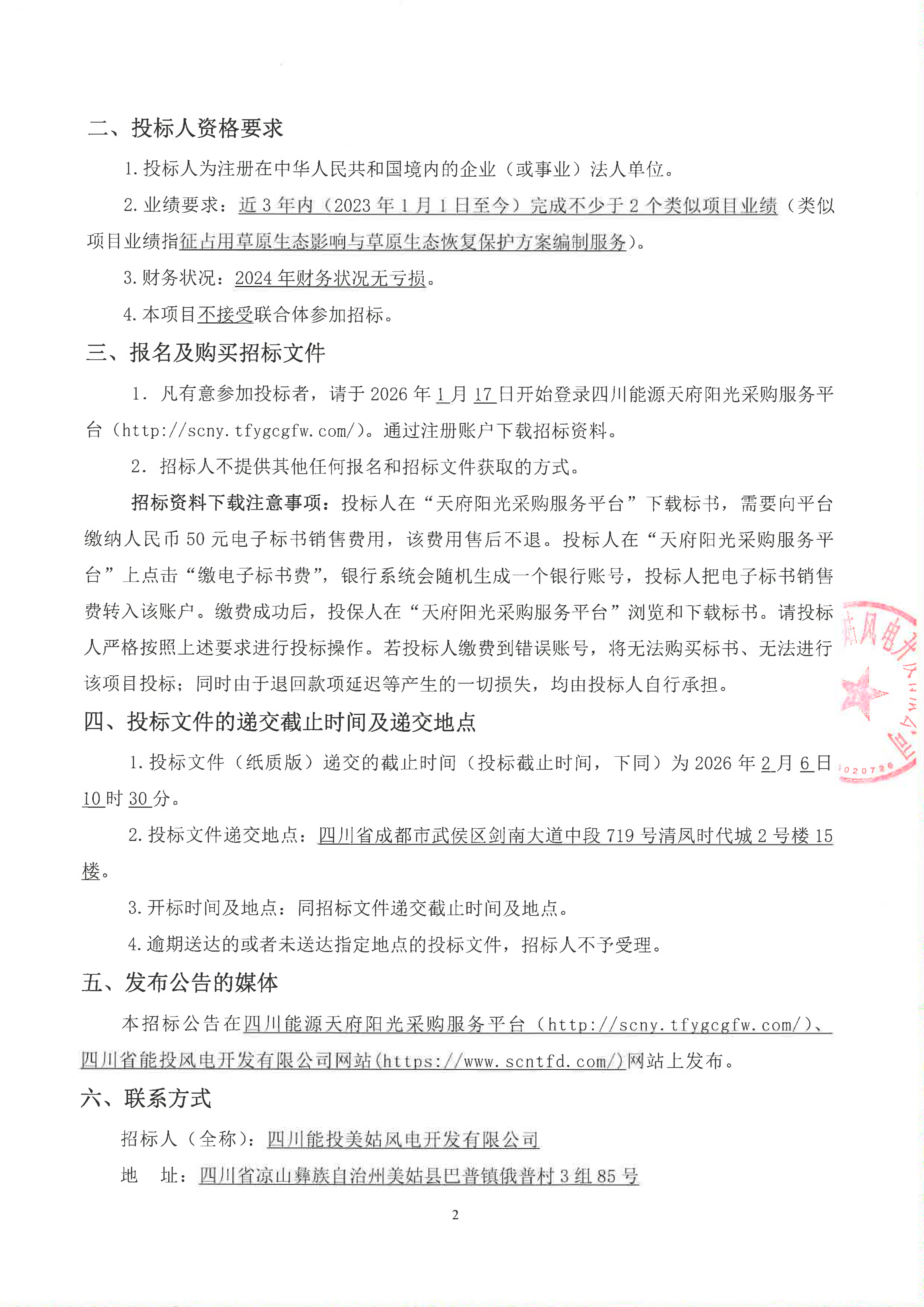 四川能投美姑风电开发有限公司(招标人名称)就凉山州美姑县瓦西森林草原防灭火通道新增征占用草原影响与草原生态恢复保护方案编制技术服务项目组织招标,诚邀符合资格条件的潜在投标人参与本项目的招标。