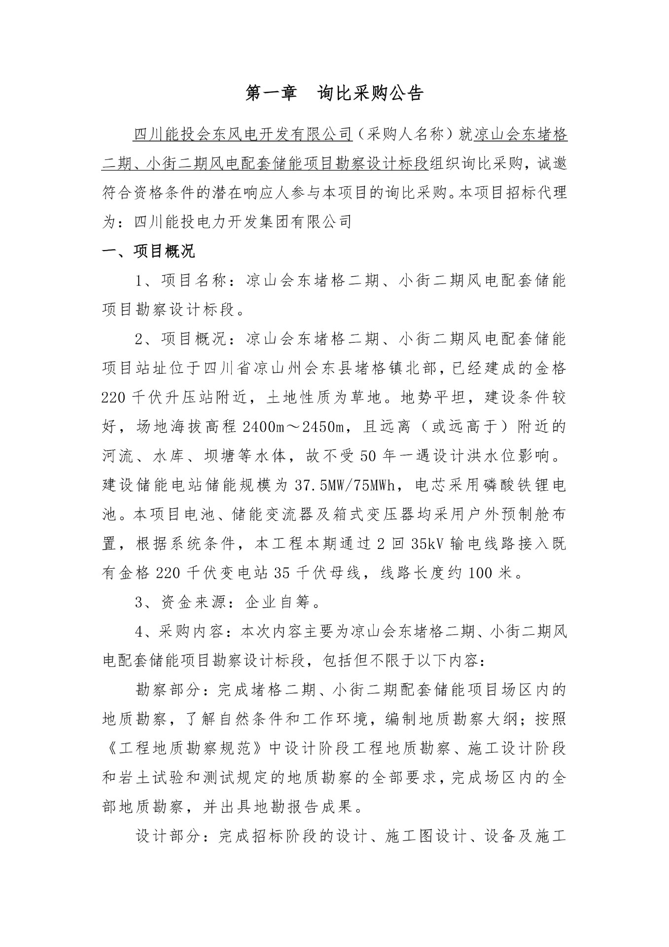 1、项目名称:凉山会东堵格二期、小街二期风电配套储能项目勘察设计标段。