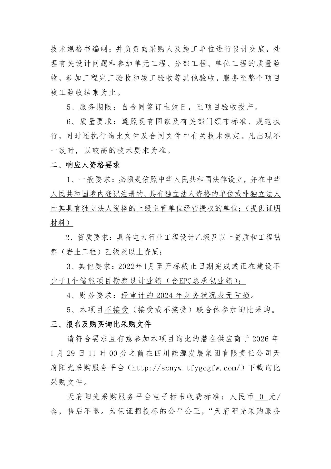 四川能投会东风电开发有限公司(采购人名称)就凉山会东堵格二期、小街二期风电配套储能项目勘察设计标段组织询比采购,诚邀符合资格条件的潜在响应人参与本项目的询比采购。本项目招标代理为:四川能投电力开发集团有限公司