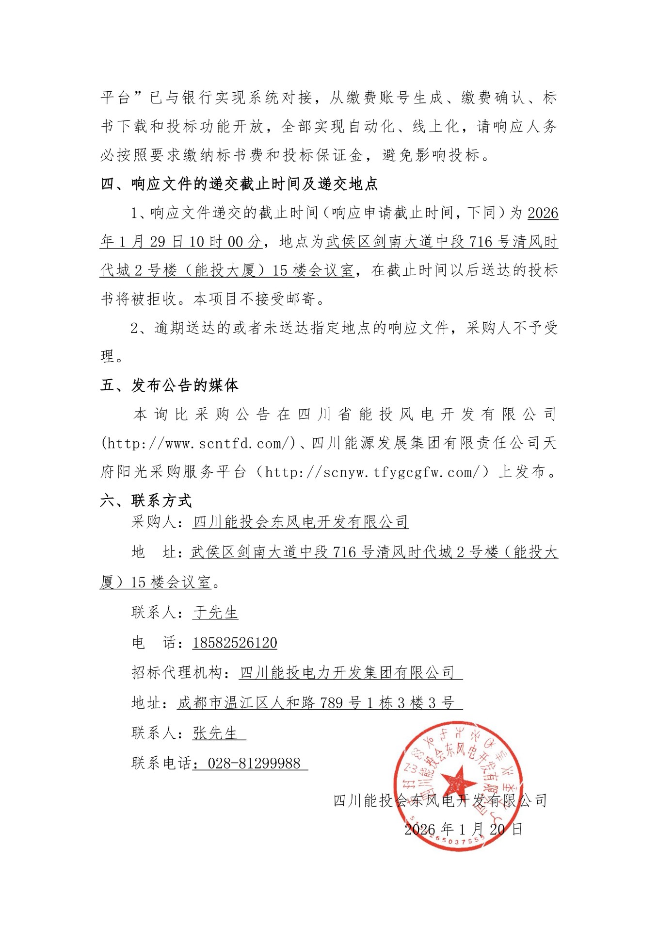 1、响应文件递交的截止时间(响应申请截止时间,下同)为2026年1月29日10时00分,地点为武侯区剑南大道中段716号清风时代城2号楼(能投大厦)15楼会议室,在截止时间以后送达的投标书将被拒收。本项目不接受邮寄。