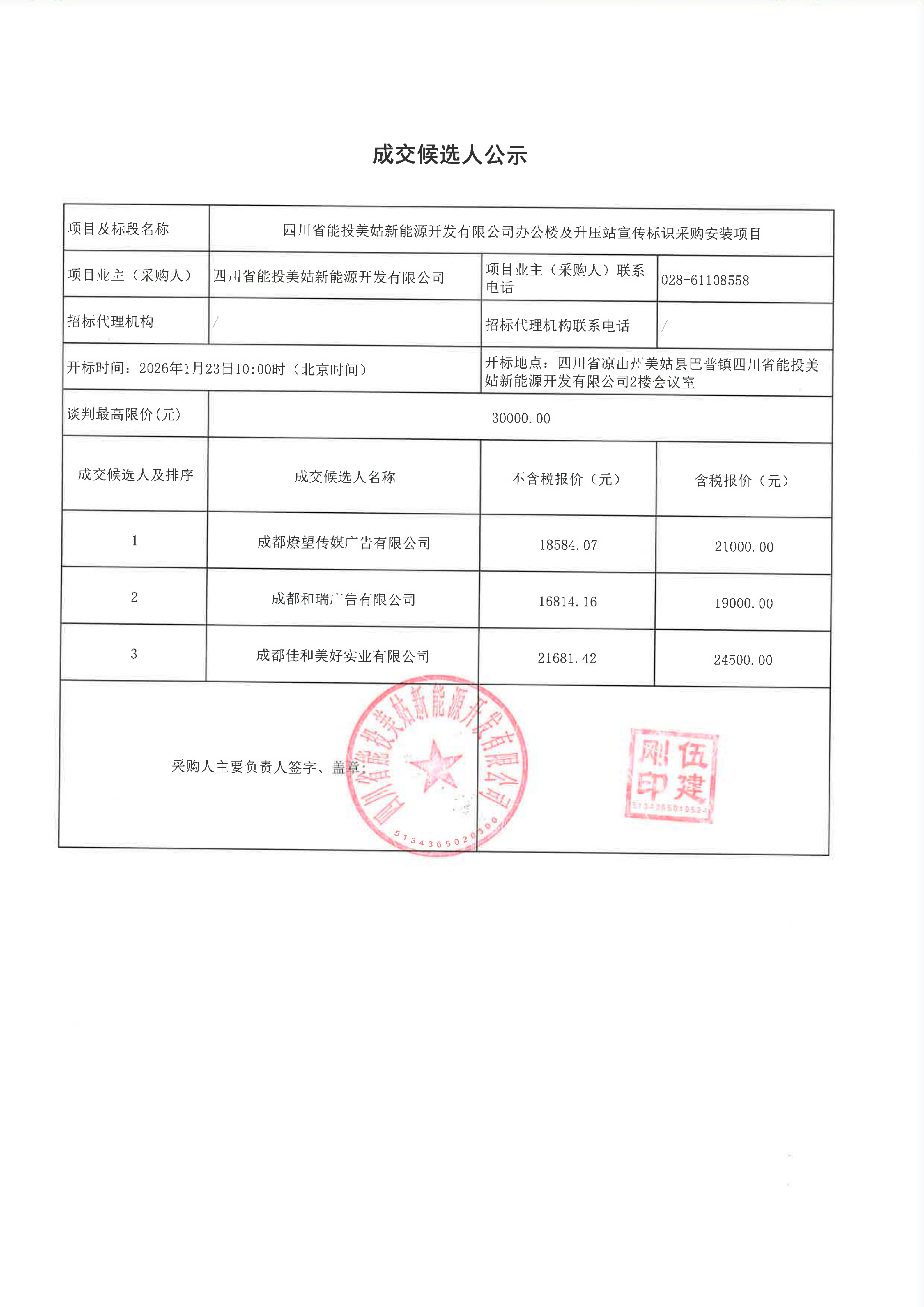 下一条: 四川能投会东风电开发有限公司关于会东淌塘三期、小街二期、堵格二期风电项目生产准备物资采购项目的询比采购公告