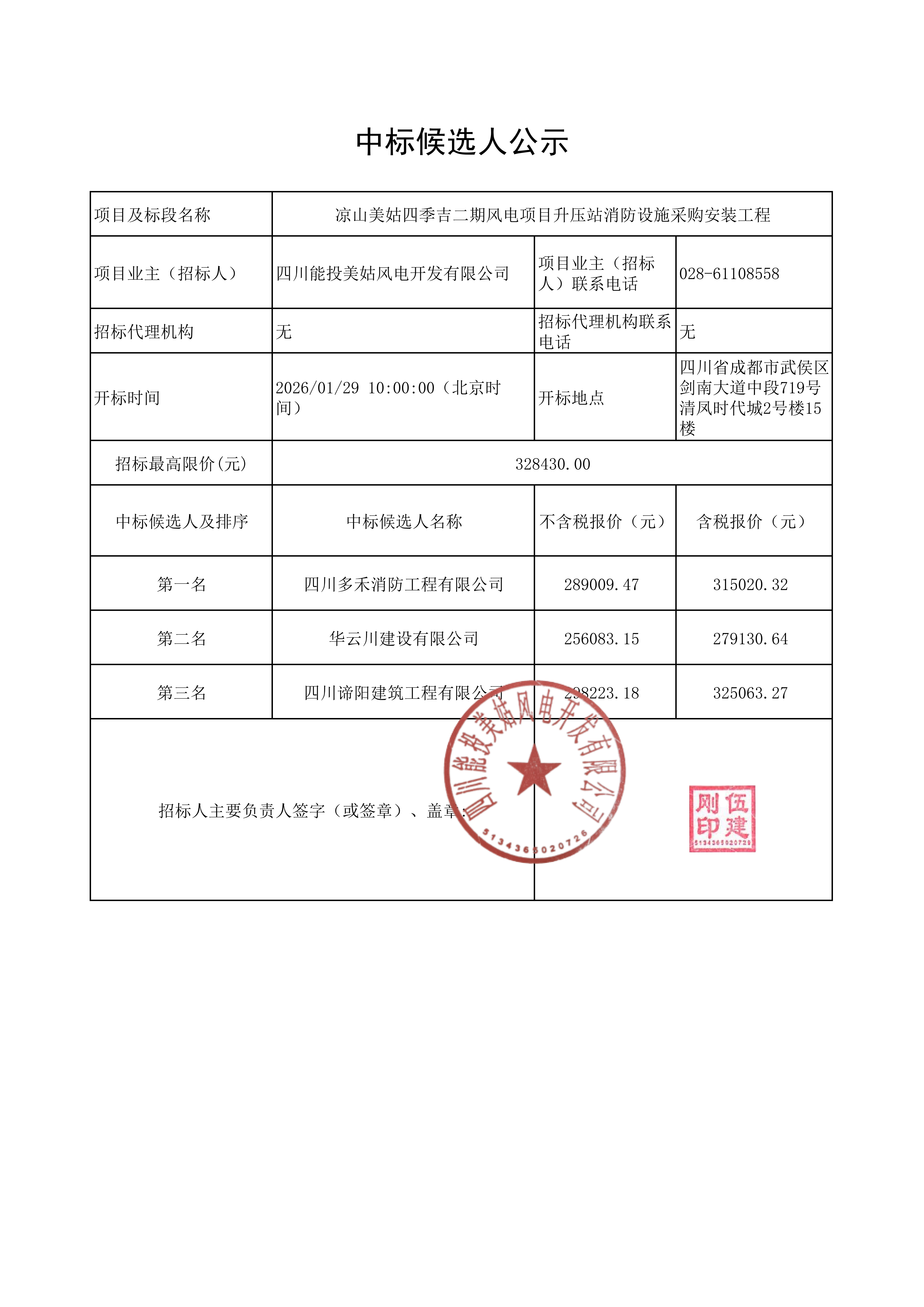 上一条:四川能投美姑风电开发有限公司关于凉山美姑四季吉二期风电项目升压站永久水源施工项目的中标候选人公示