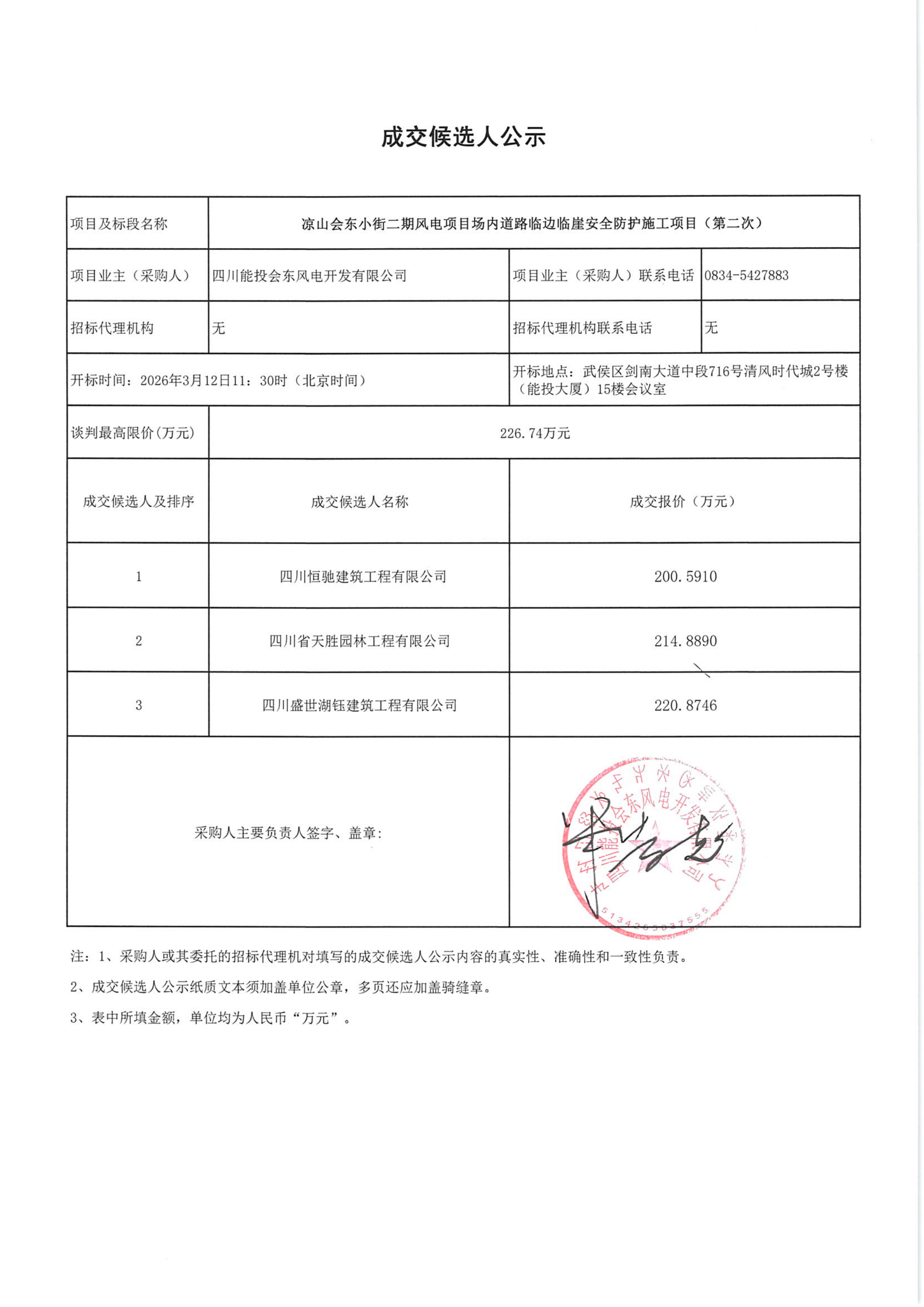 上一条:四川能投会东风电开发有限公司关于凉山会东淌塘三期风电项目场内道路临边临崖安全防护施工项目 (第二次)的成交候选人公示