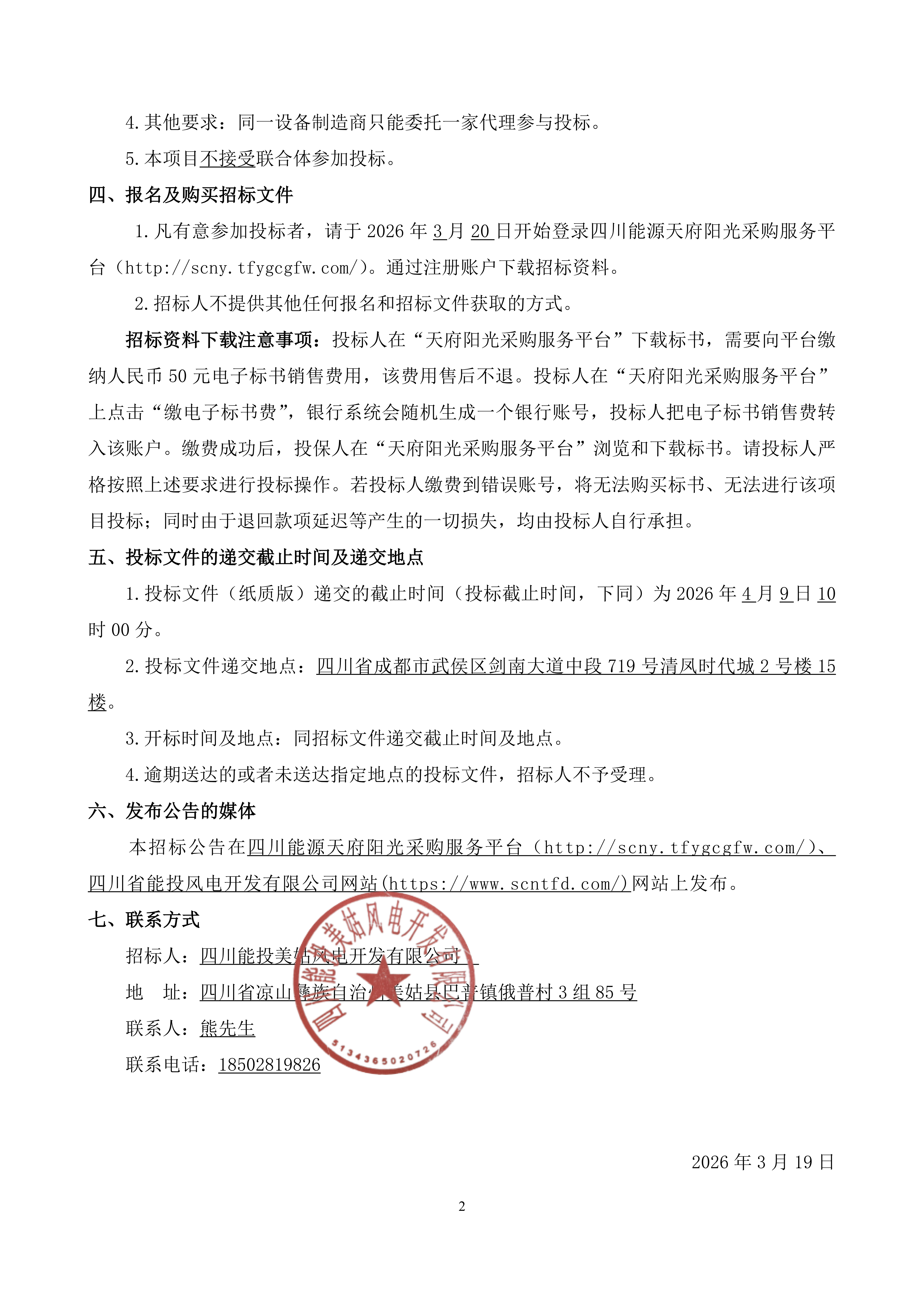 1.凡有意参加投标者,请于2026年3月20日开始登录四川能源天府阳光采购服务平台(http://scny.tfygcgfw.com/)。通过注册账户下载招标资料。
