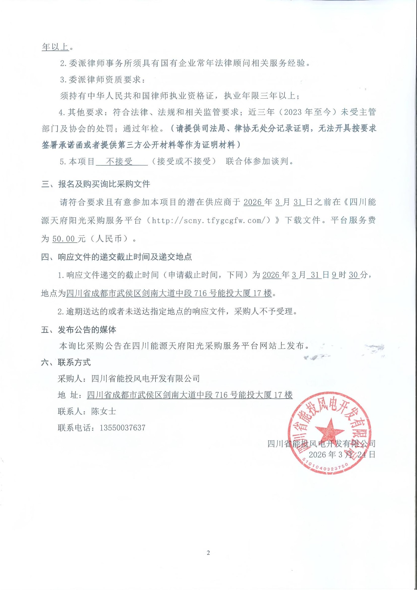 1.响应文件递交的截止时间(申请截止时间,下同)为2026年3月 31日9时30分,地点为四川省成都市武侯区剑南大道中段716号能投大厦17楼。