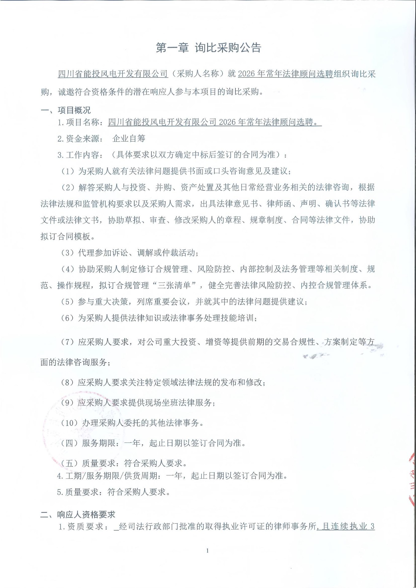 1.资质要求: 经司法行政部门批准的取得执业许可证的律师事务所,且连续执业3年以上。