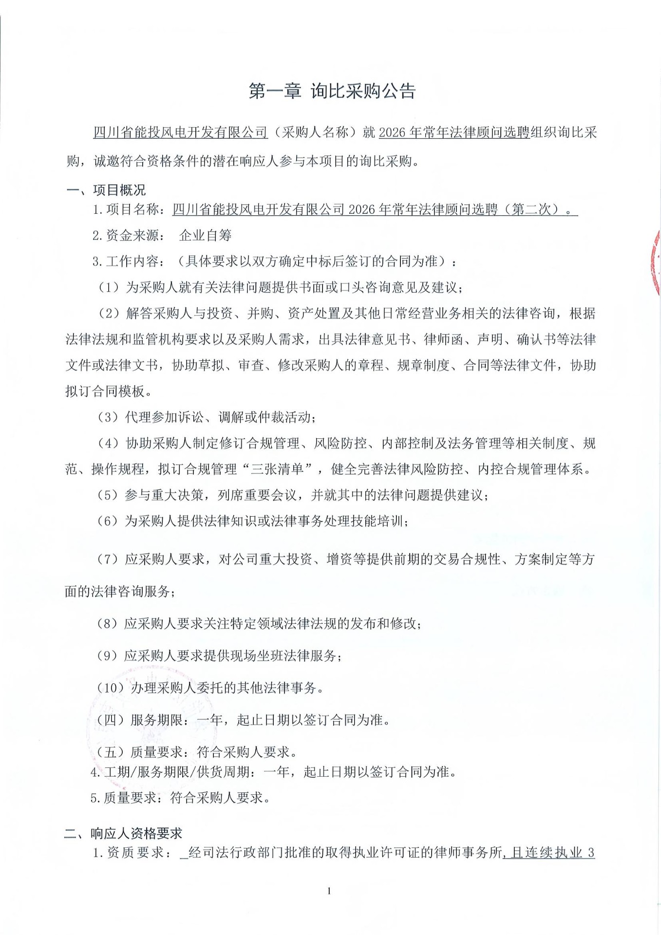 本询比采购公告在四川能源天府阳光采购服务平台网站上发布。