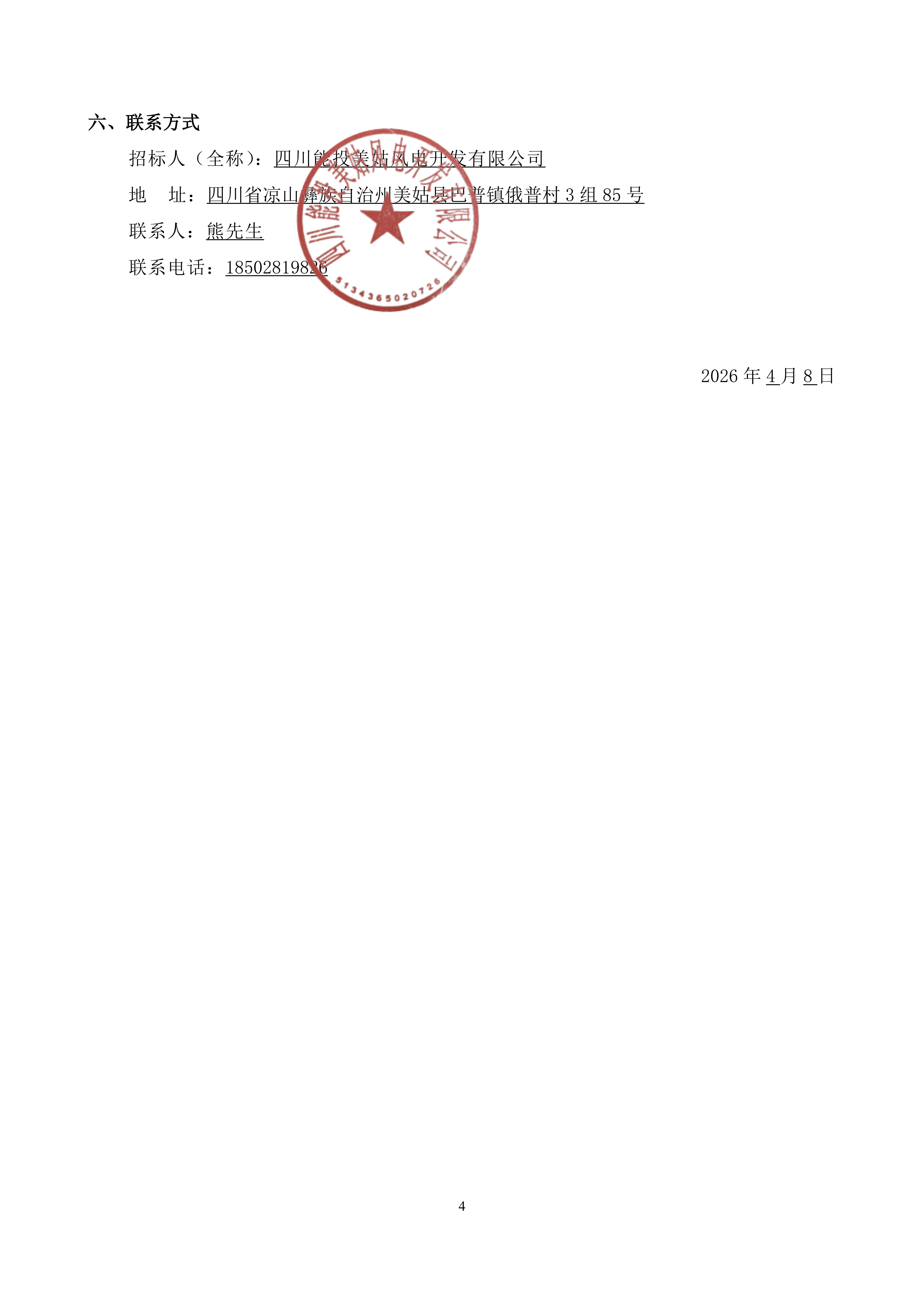 招标人(全称):四川能投美姑风电开发有限公司