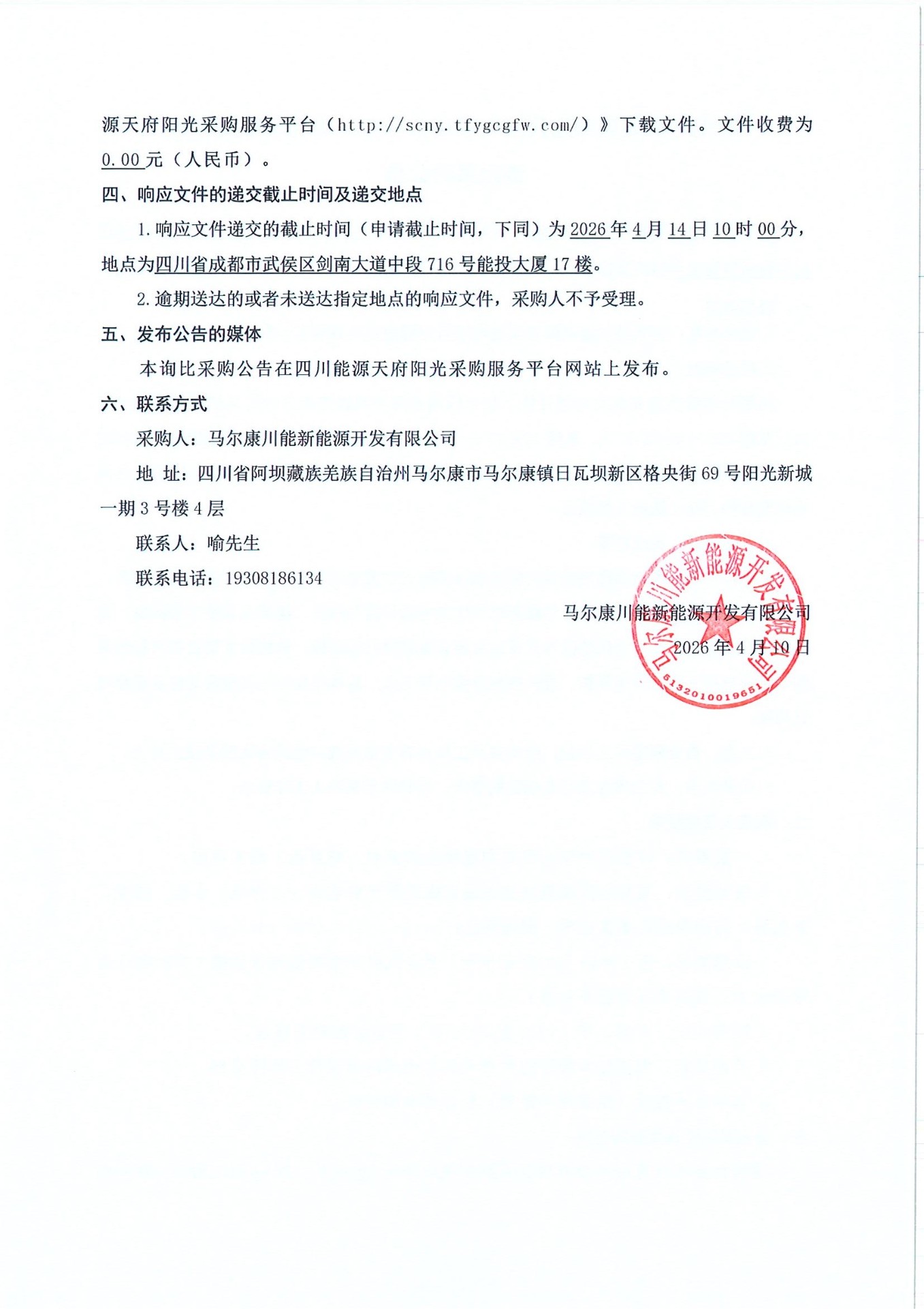请符合要求且有意参加本项目的潜在供应商于2026年4月14日之前在《四川能源天府阳光采购服务平台(http://scny.tfygcgfw.com/)》下载文件。文件收费为0.00元(人民币)。