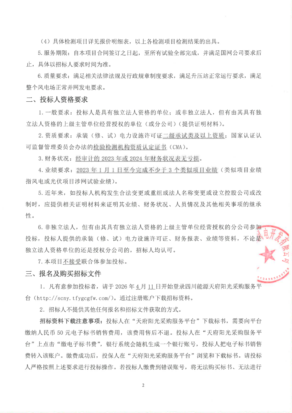 1.凡有意参加投标者,请于2026年4月11日开始登录四川能源天府阳光采购服务平台(http://scny.tfygcgfw.com/)。通过注册账户下载招标资料。