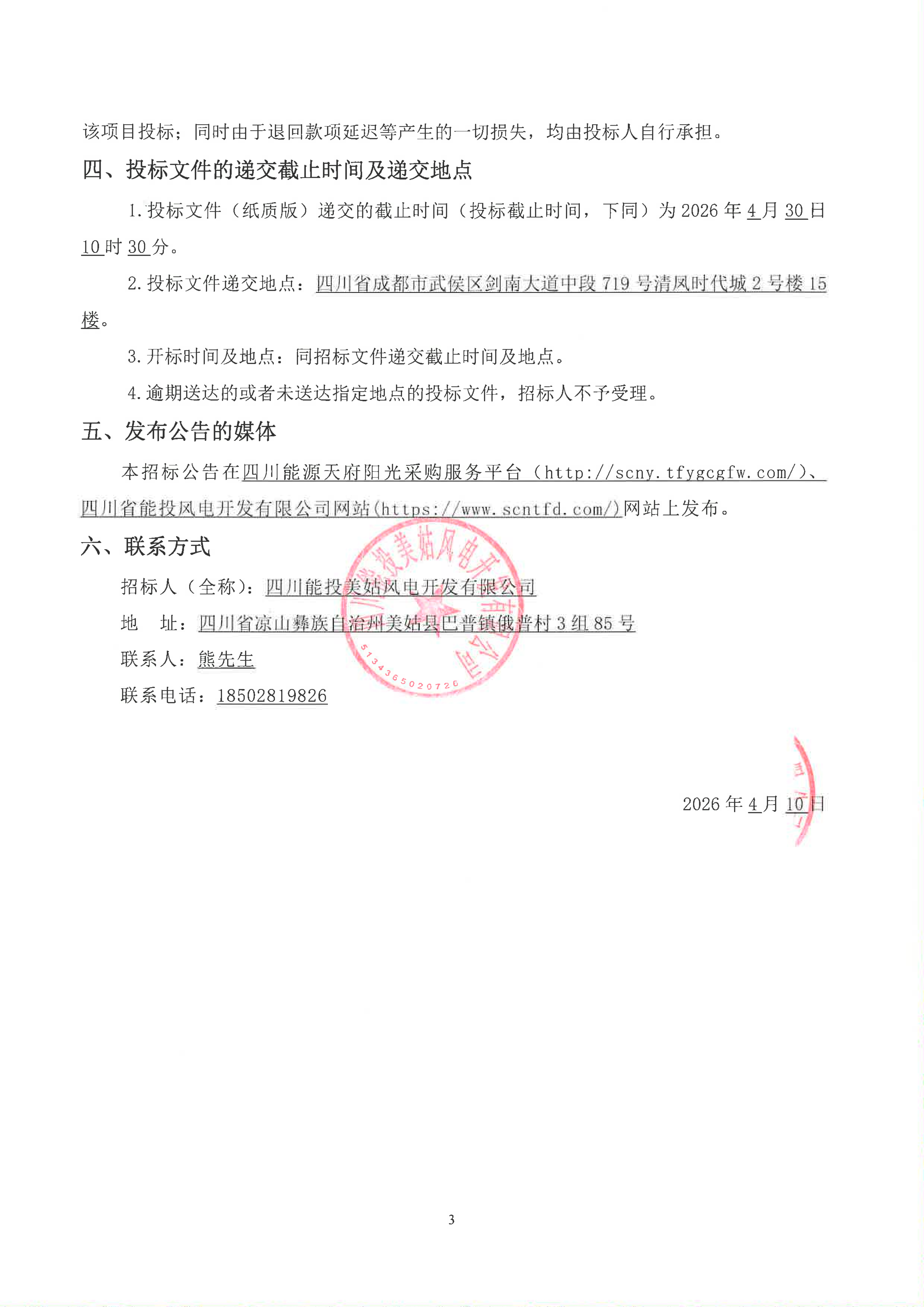 招标人(全称):四川能投美姑风电开发有限公司