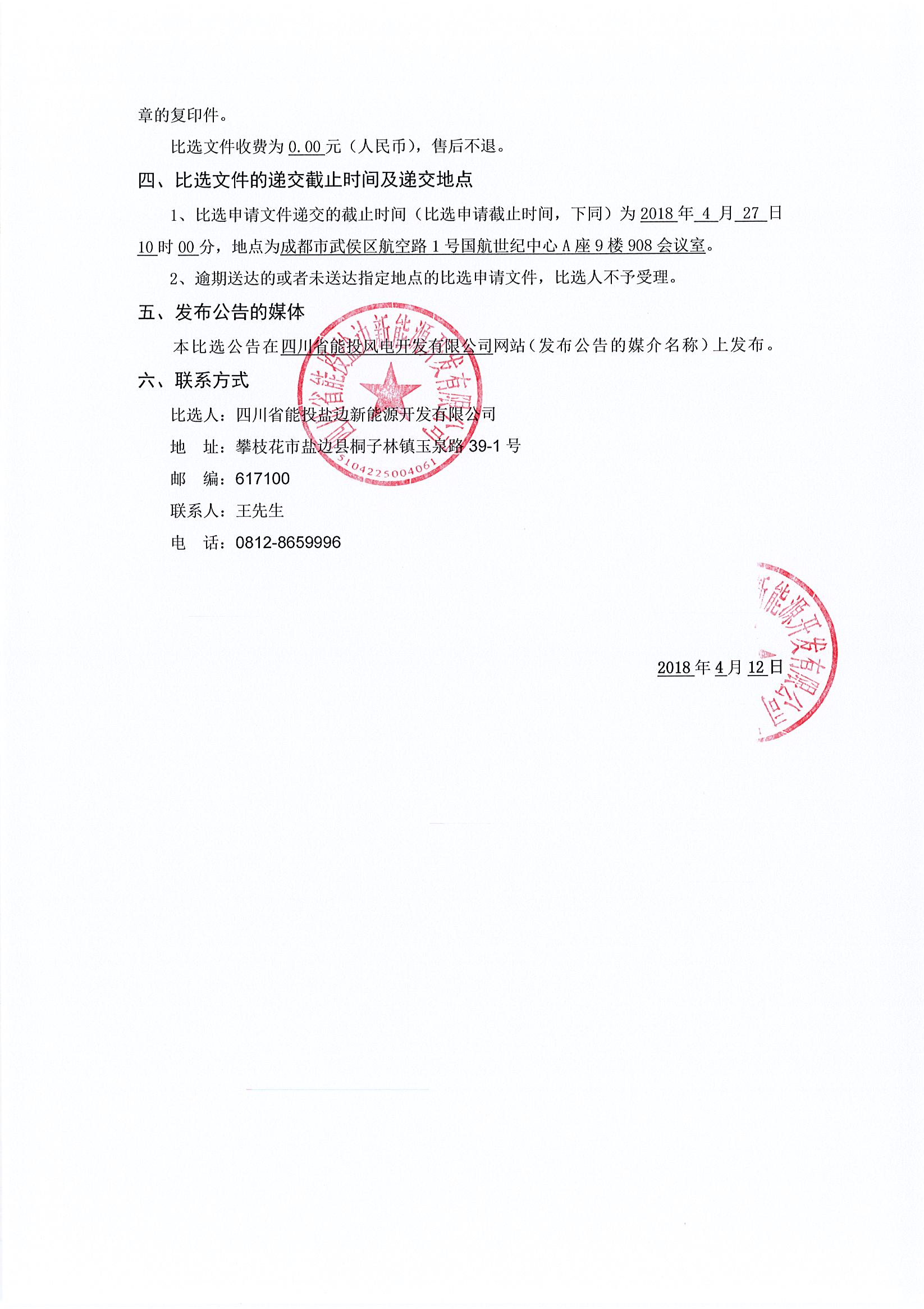 比选人:四川省能投盐边新能源开发有限公司