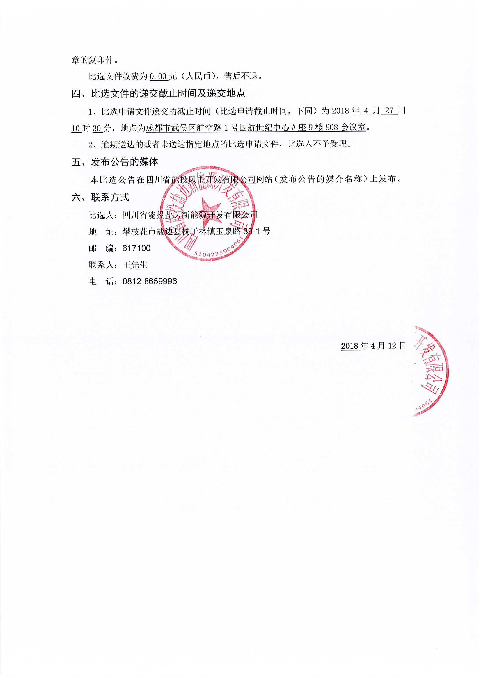 比选人:四川省能投盐边新能源开发有限公司