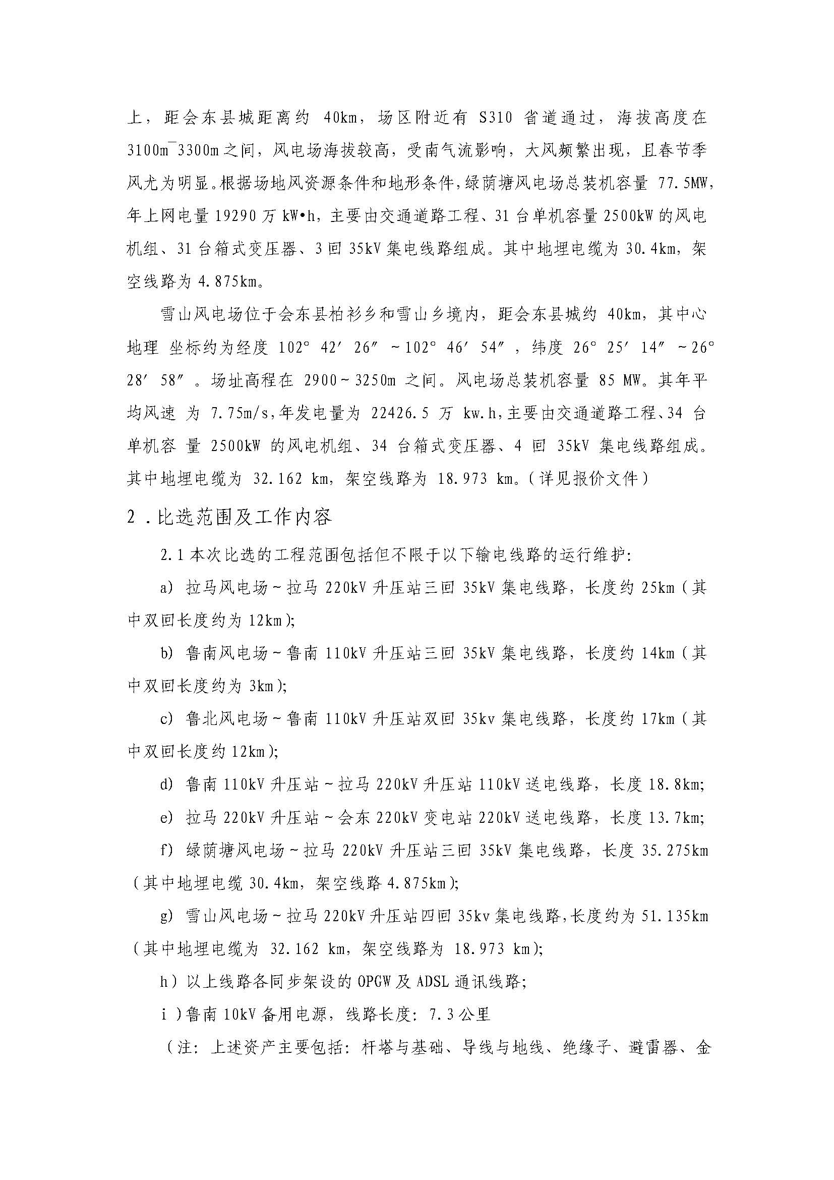 2.1本次比选的工程范围包括但不限于以下输电线路的运行维护: