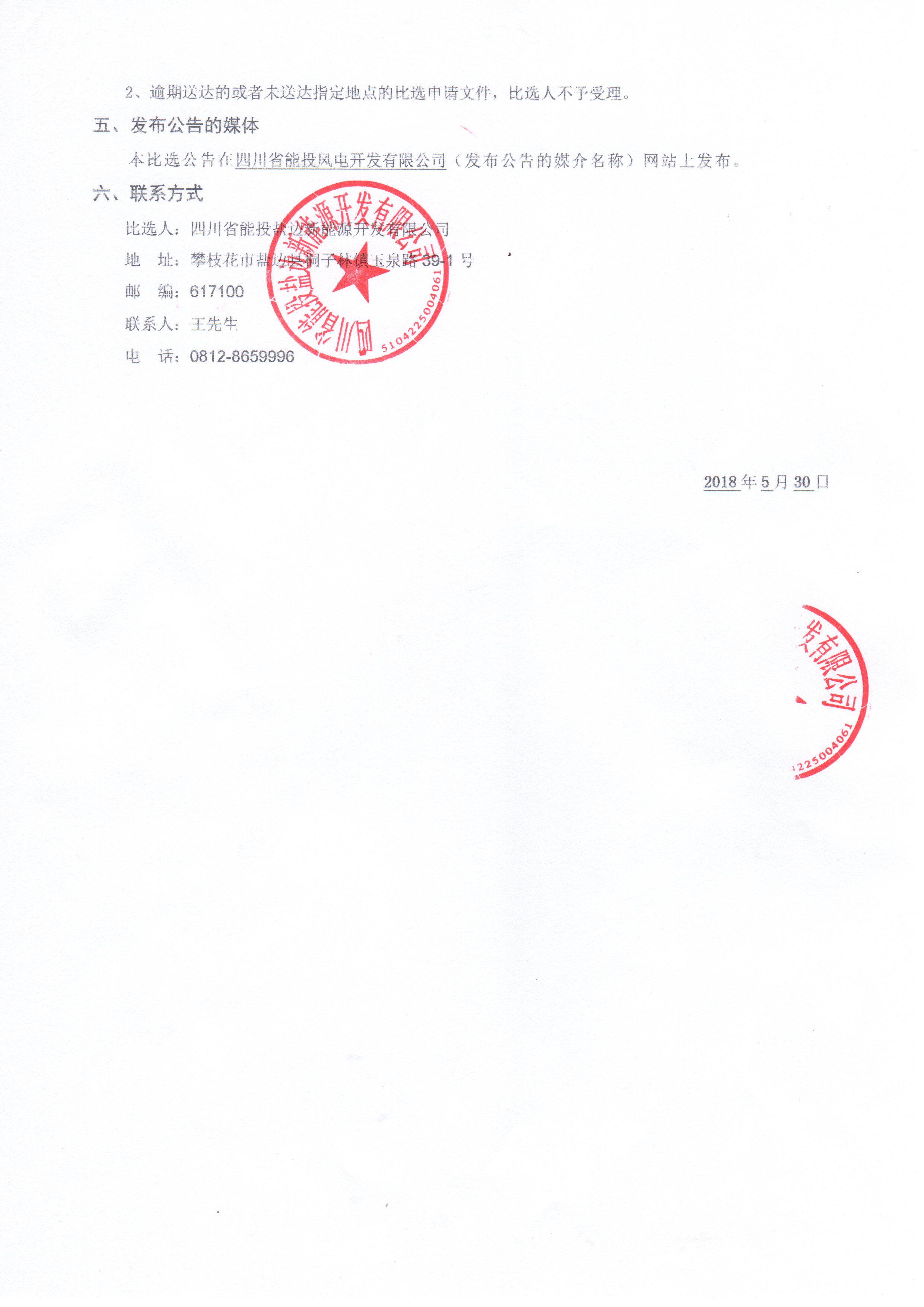 请有意参加本项目竞争的比选申请人,请于2018年5月30日至2018年6月1日,每日上午9:00时至12:00 时,下午14:00时至17:00时(北京时间,下同)持以下资料在成都市武侯区航空路1号国航世纪中心A座9楼四川省能投盐边新能源开发有限公司购买比选文件: