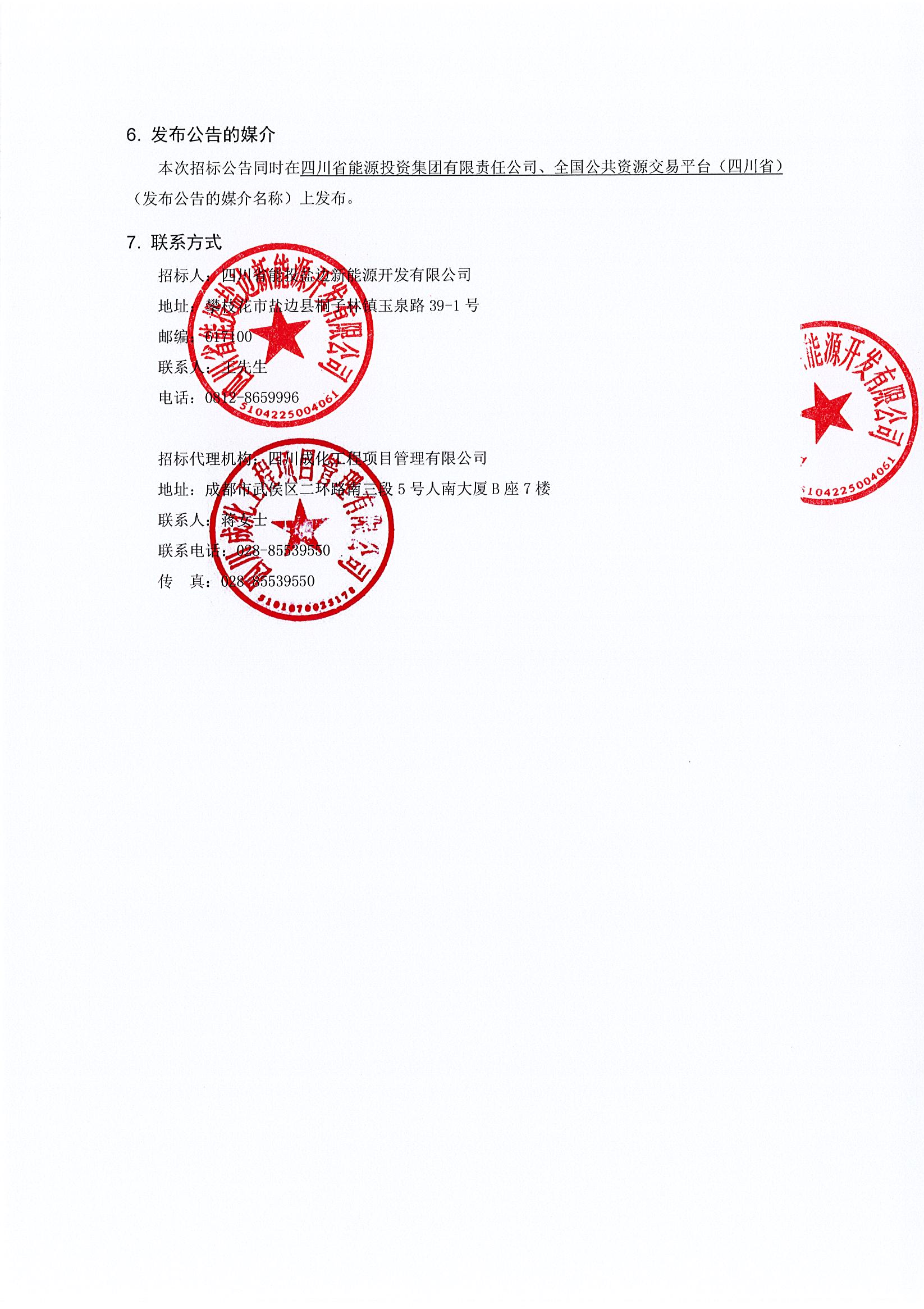 本次招标公告同时在四川省能源投资集团有限责任公司、全国公共资源交易平台(四川省)(发布公告的媒介名称)上发布。