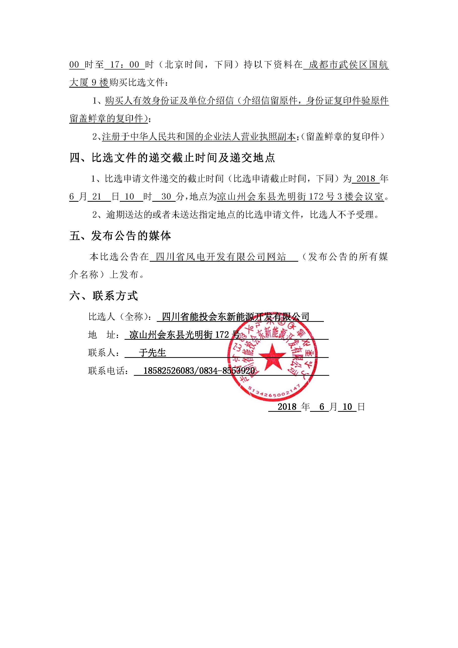 本比选公告在 四川省风电开发有限公司网站 (发布公告的所有媒介名称)上发布。