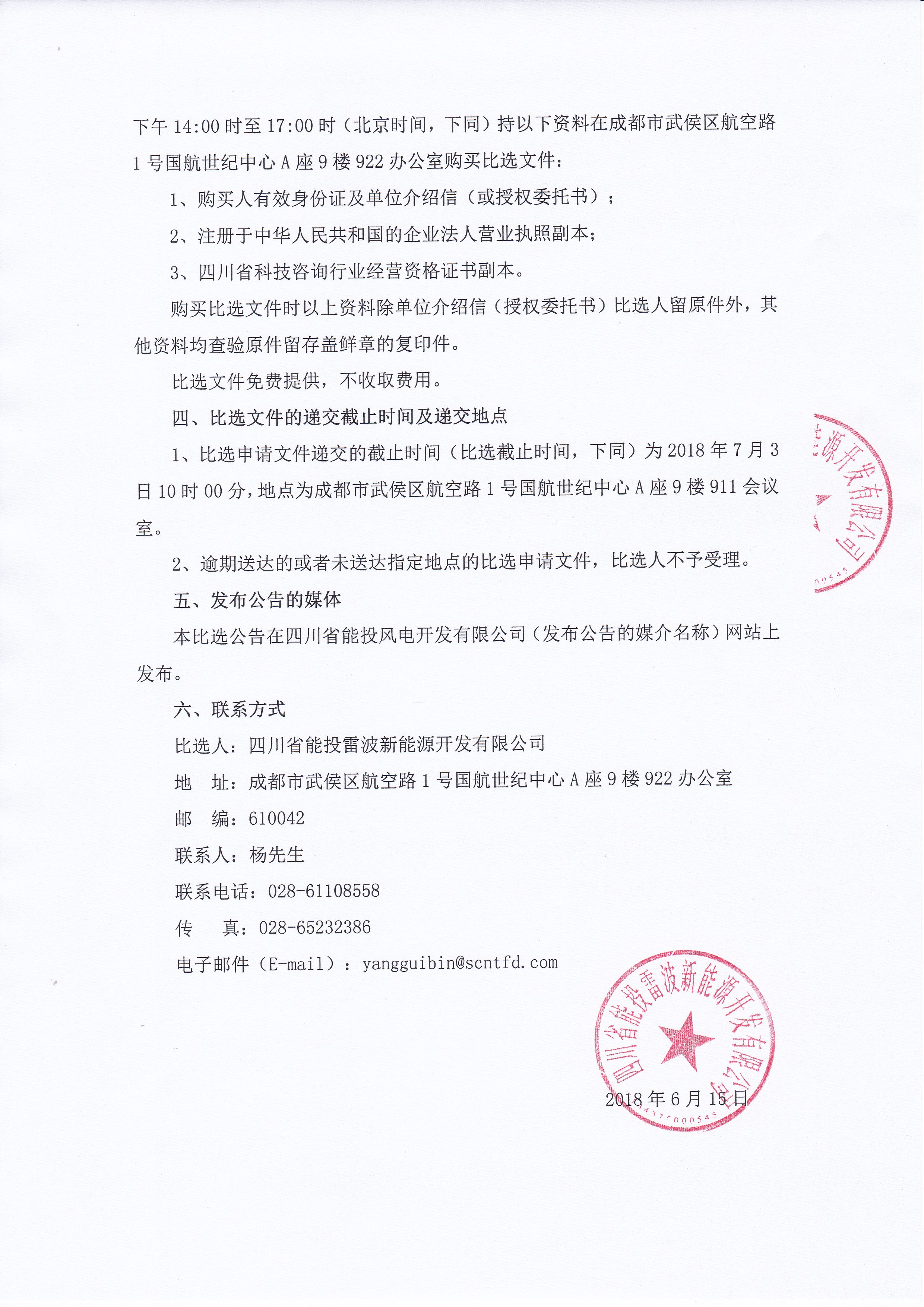 请有意参加本项目竞争的比选申请人,请于2018年6月16日至2018年6月20日(法定公休日、法定节假日除外),每日上午9:00时至11:30 时,下午14:00时至17:00时(北京时间,下同)持以下资料在成都市武侯区航空路1号国航世纪中心A座9楼922办公室购买比选文件: