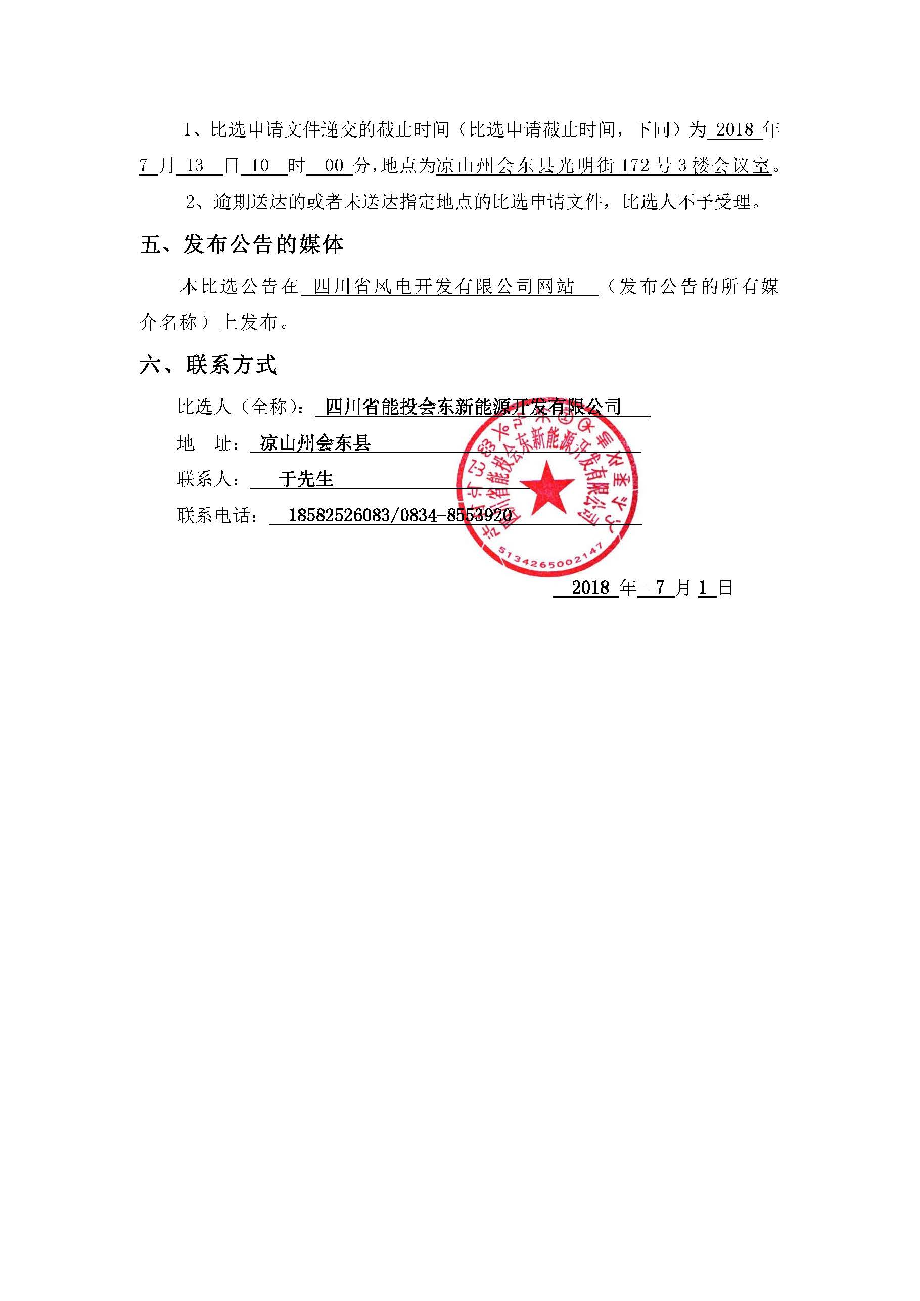 本比选公告在 四川省风电开发有限公司网站 (发布公告的所有媒介名称)上发布。