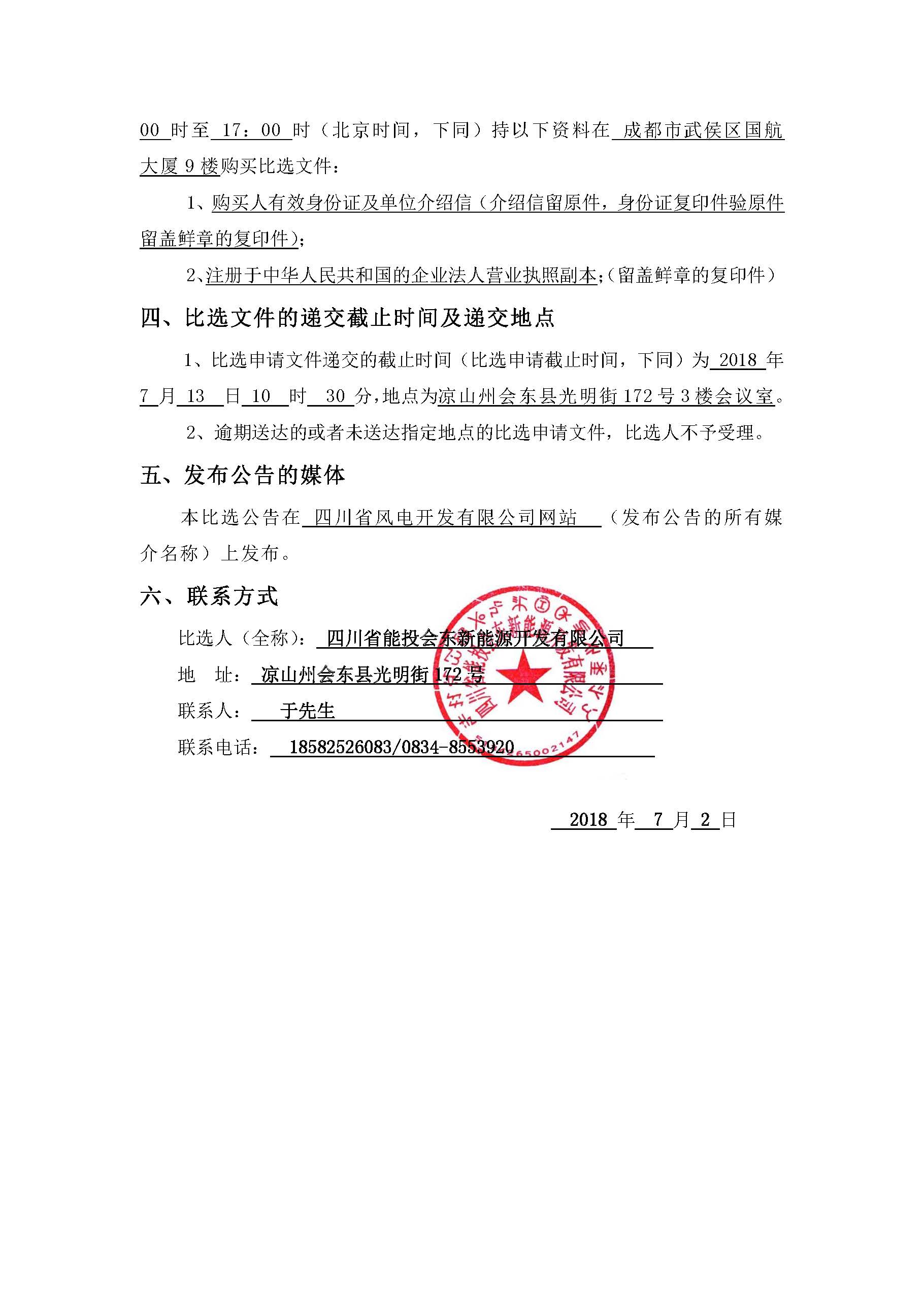 本比选公告在 四川省风电开发有限公司网站 (发布公告的所有媒介名称)上发布。