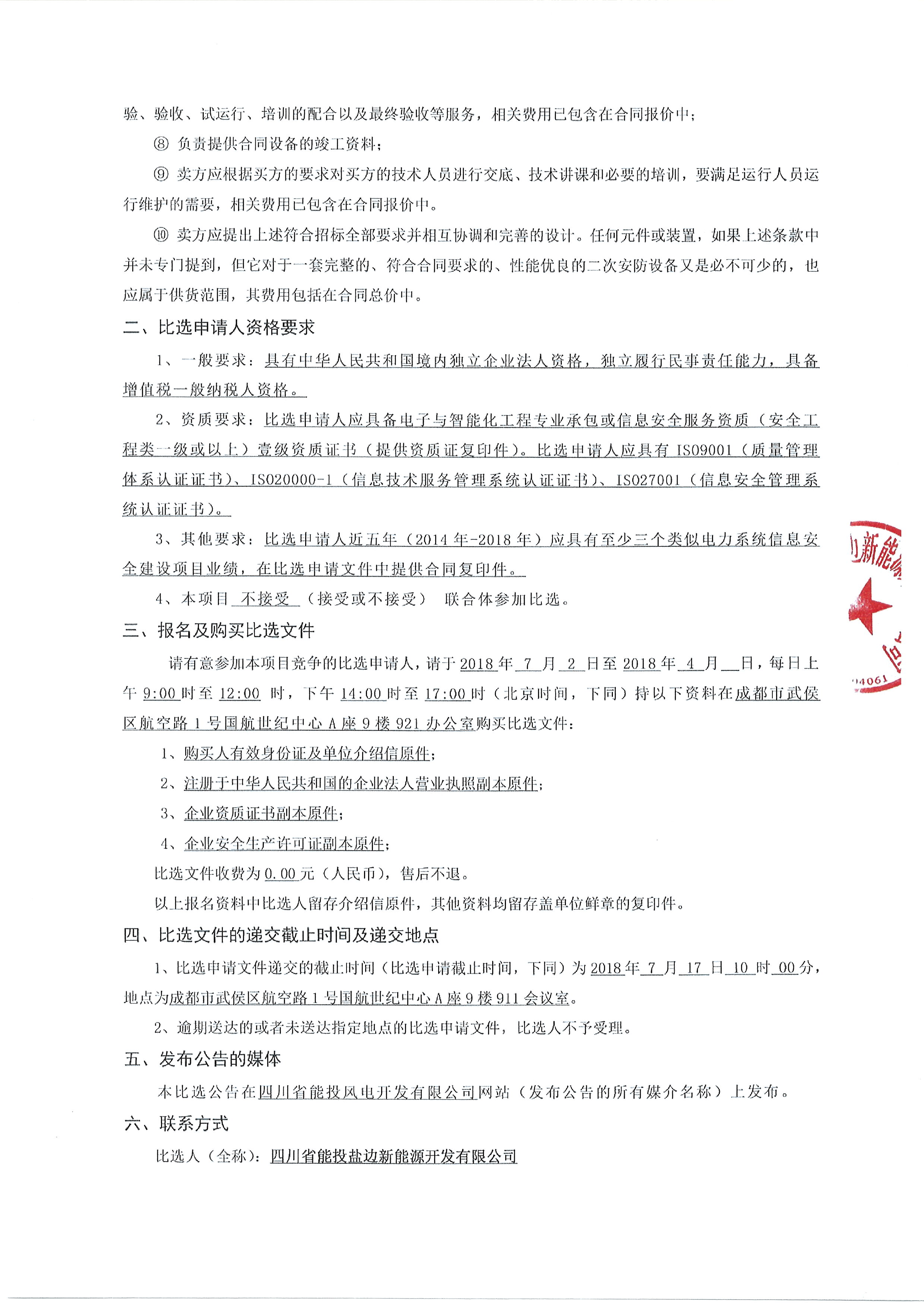 3、其他要求:比选申请人近五年(2014年-2018年)应具有至少三个类似电力系统信息安全建设项目业绩,在比选申请文件中提供合同复印件。