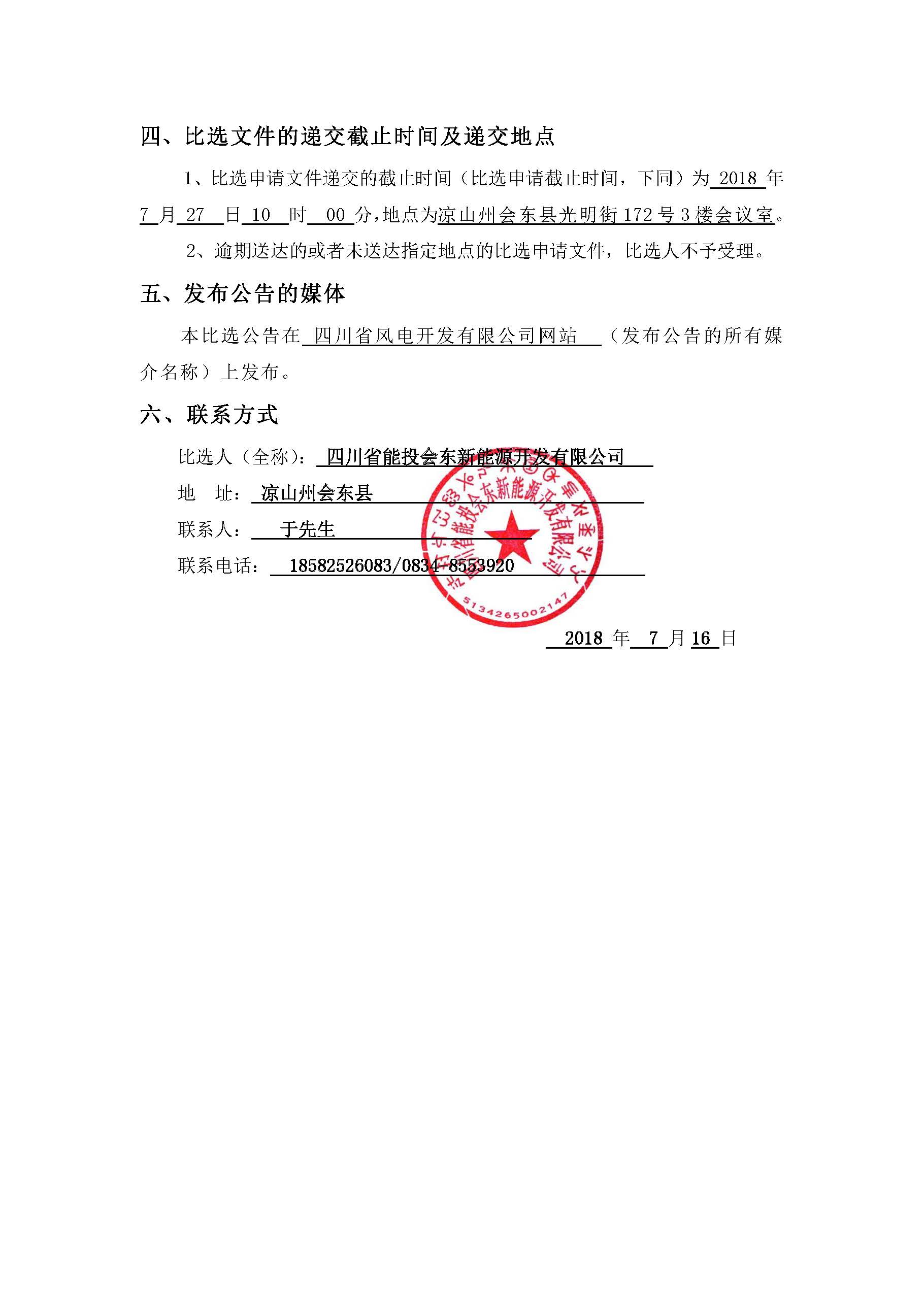 本比选公告在 四川省风电开发有限公司网站 (发布公告的所有媒介名称)上发布。