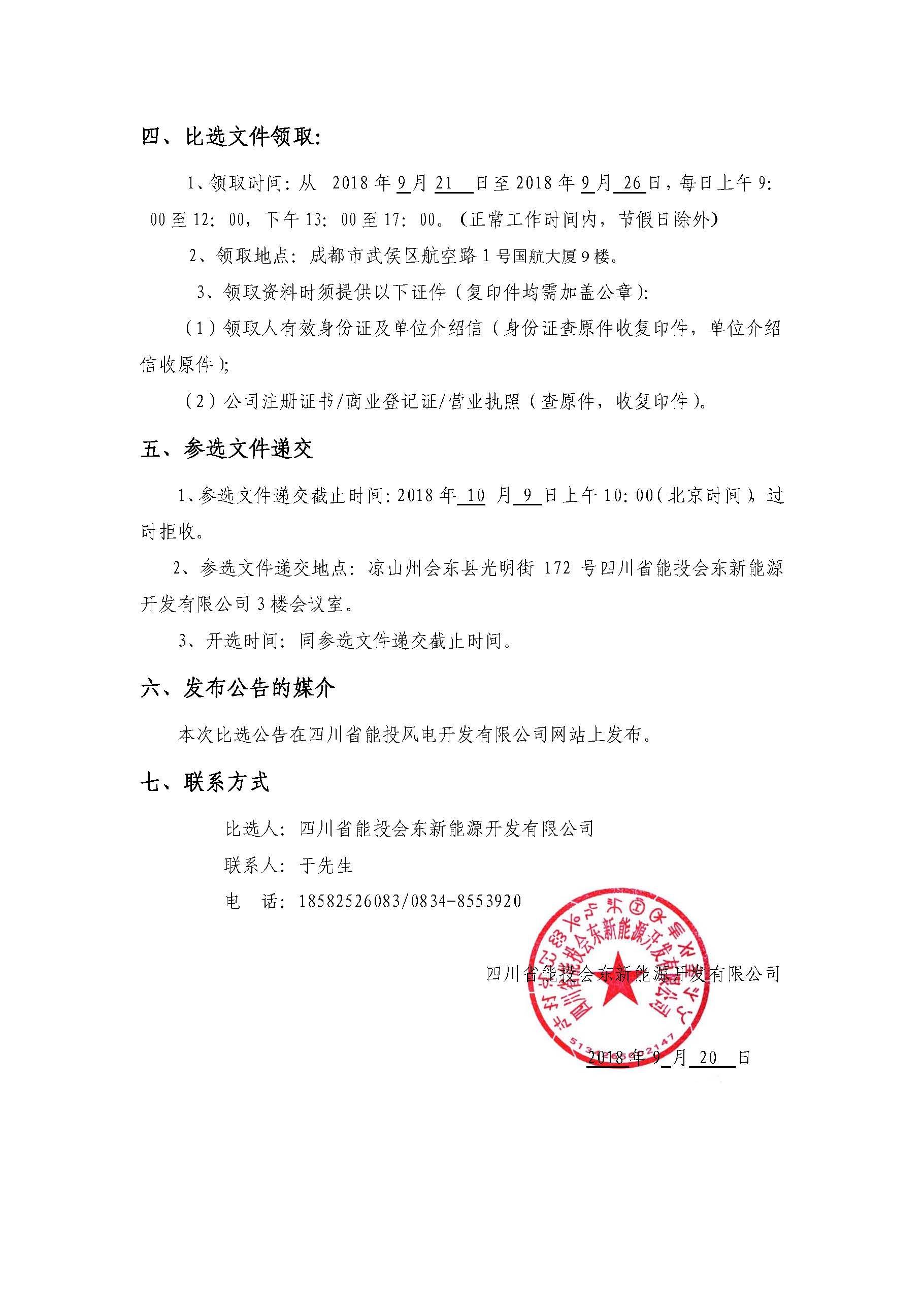 2、参选文件递交地点:凉山州会东县光明街172号四川省能投会东新能源开发有限公司3楼会议室。