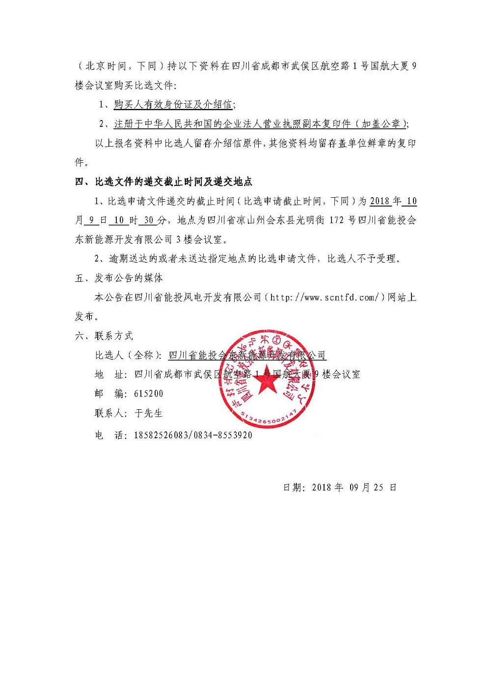 1、比选申请文件递交的截止时间(比选申请截止时间,下同)为2018年 10 月 9 日 10 时 30分,地点为四川省凉山州会东县光明街172号四川省能投会东新能源开发有限公司3楼会议室。