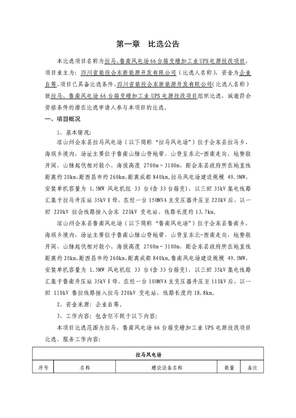 本项目比选范围为拉马、鲁南风电场66台箱变增加工业UPS电源技改项目比选,服务工作内容: