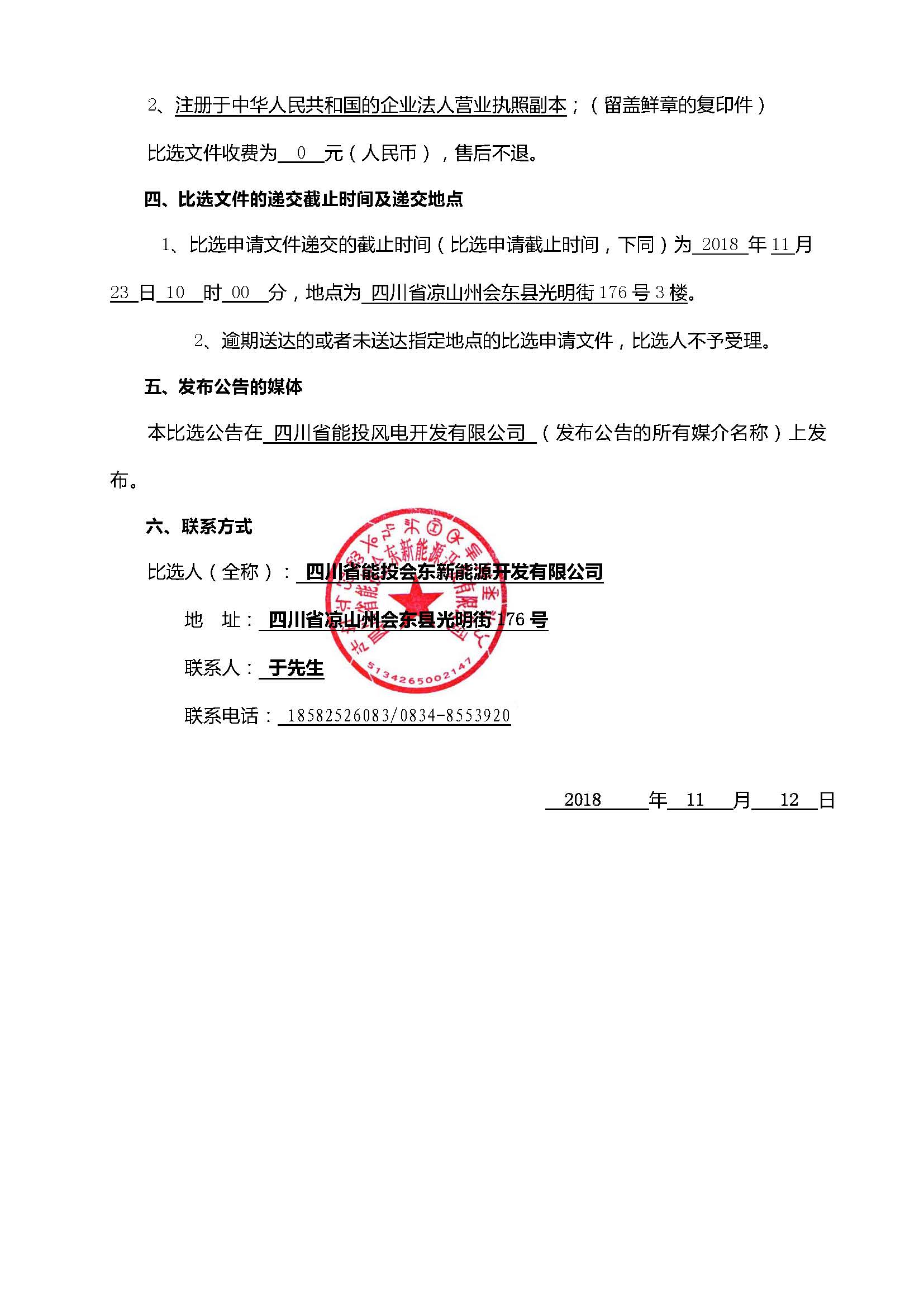 比选人(全称): 四川省能投会东新能源开发有限公司