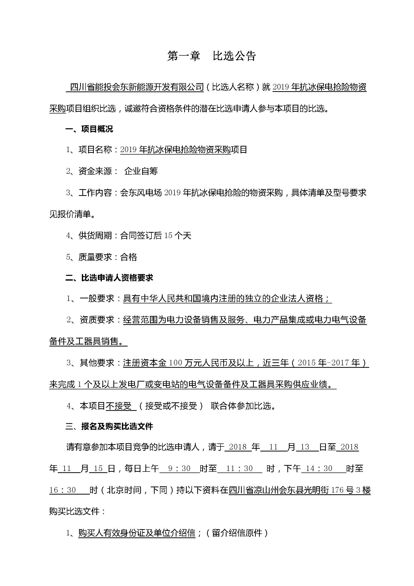 四川省能投会东新能源开发有限公司(比选人名称)就2019年抗冰保电抢险物资采购项目组织比选,诚邀符合资格条件的潜在比选申请人参与本项目的比选。