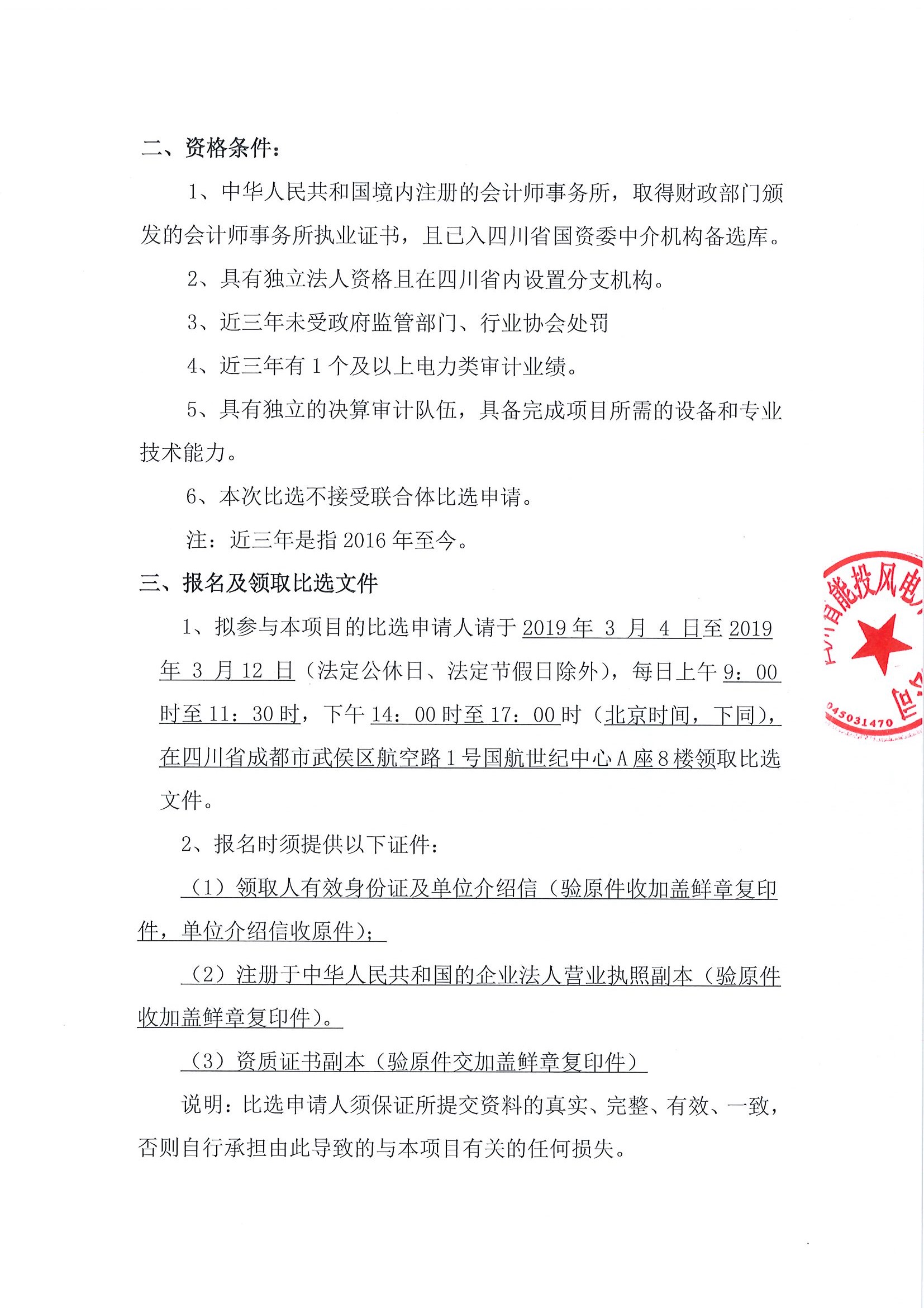 1、中华人民共和国境内注册的会计师事务所,取得财政部门颁发的会计师事务所执业证书,且已入四川省国资委中介机构备选库。