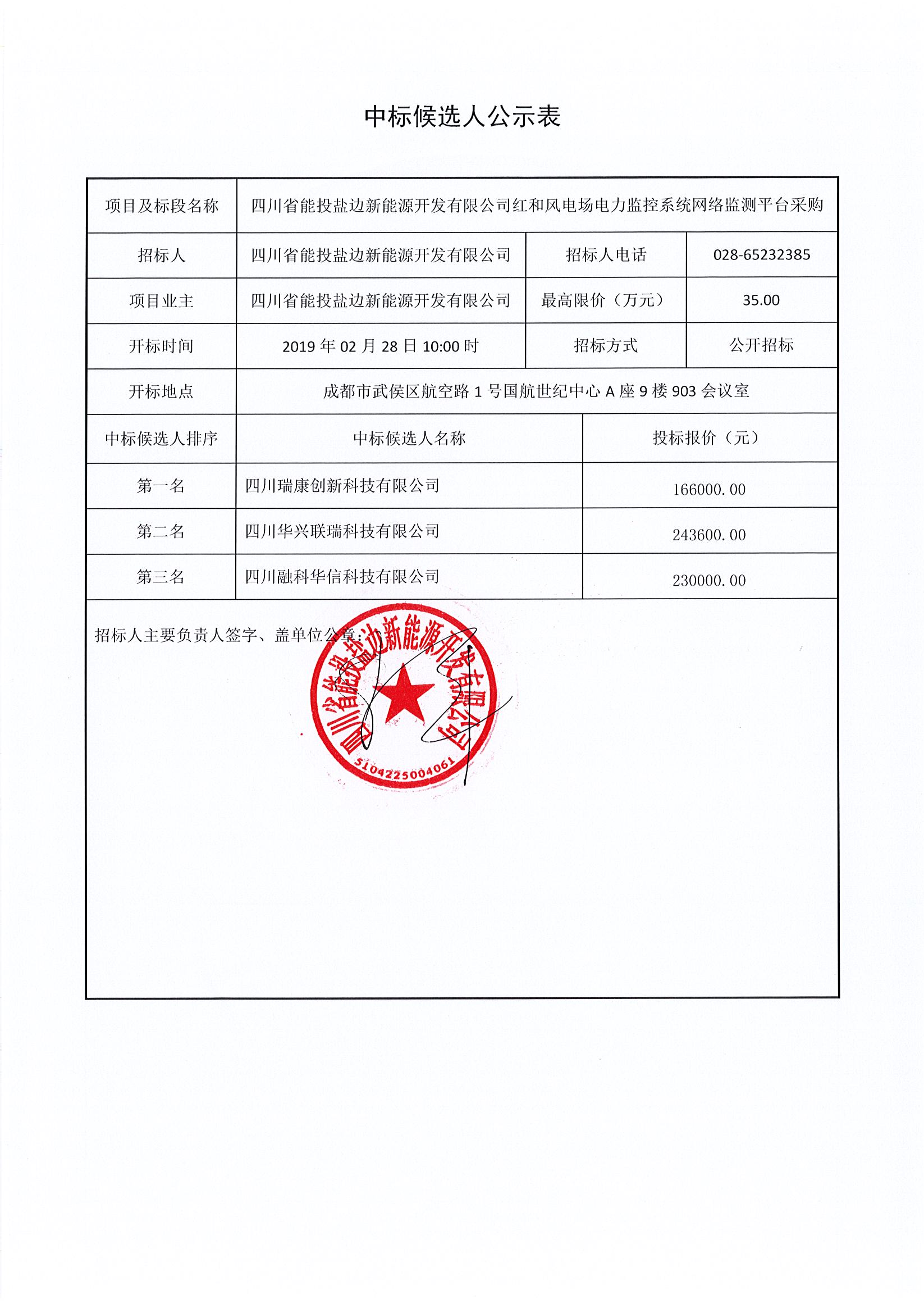 四川省能投盐边新能源开发有限公司红和风电场电力监控系统网络监测平台采购 |