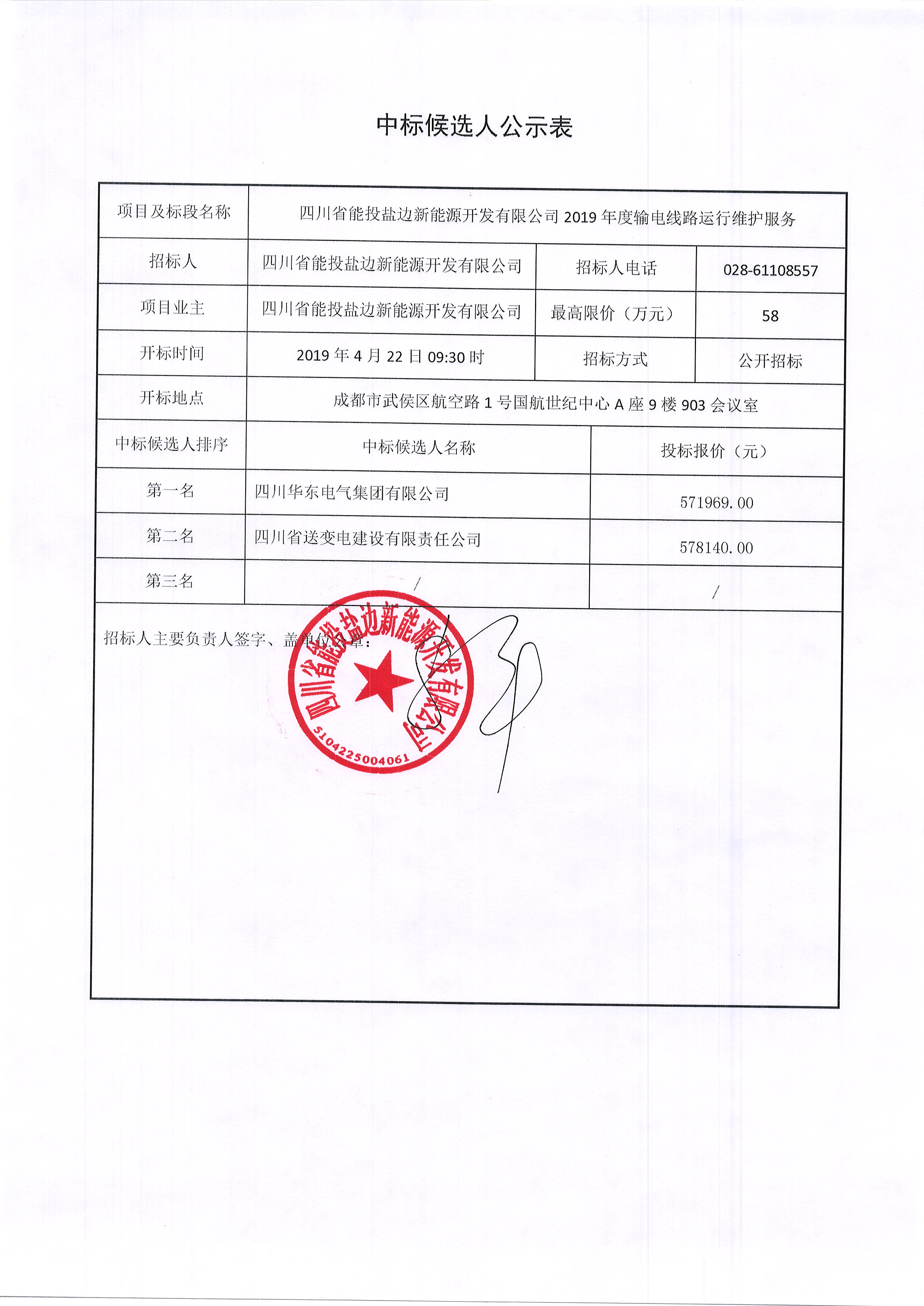 四川省能投盐边新能源开发有限公司2019年度输电线路运行维护服务 |