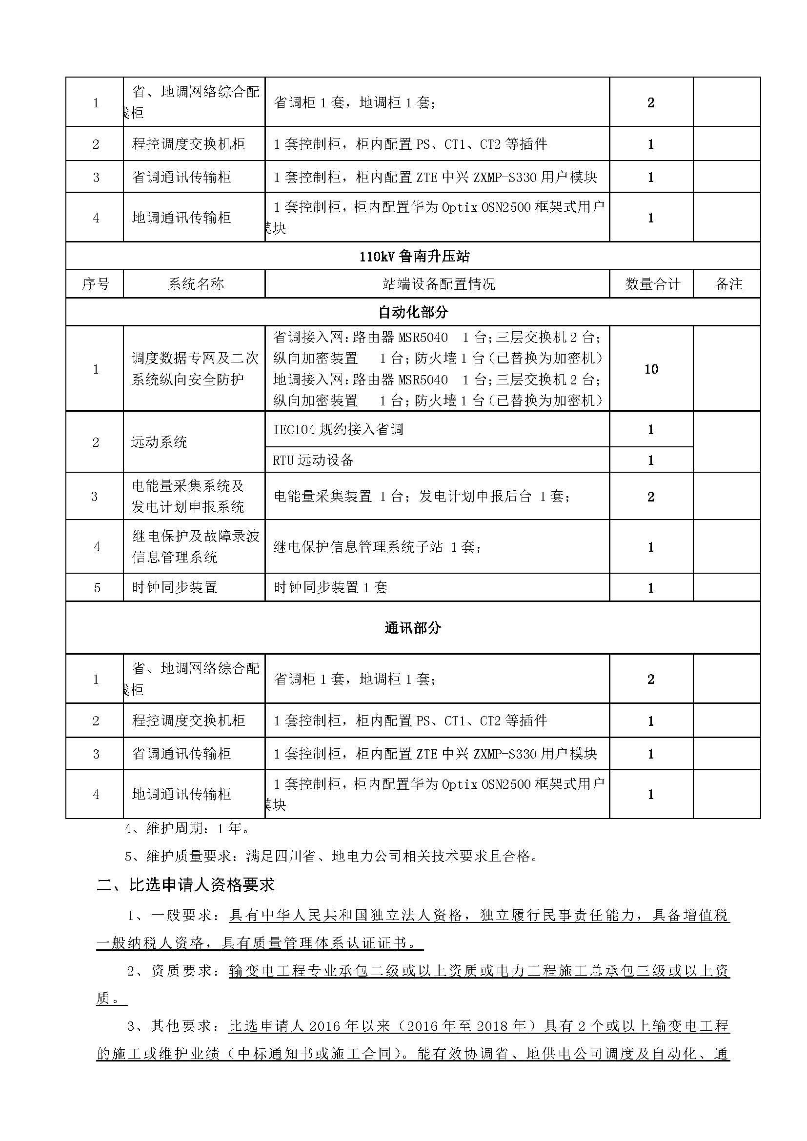 3、其他要求:比选申请人2016年以来(2016年至2018年)具有2个或以上输变电工程的施工或维护业绩(中标通知书或施工合同)。能有效协调省、地供电公司调度及自动化、通讯等相关业务部门关系。