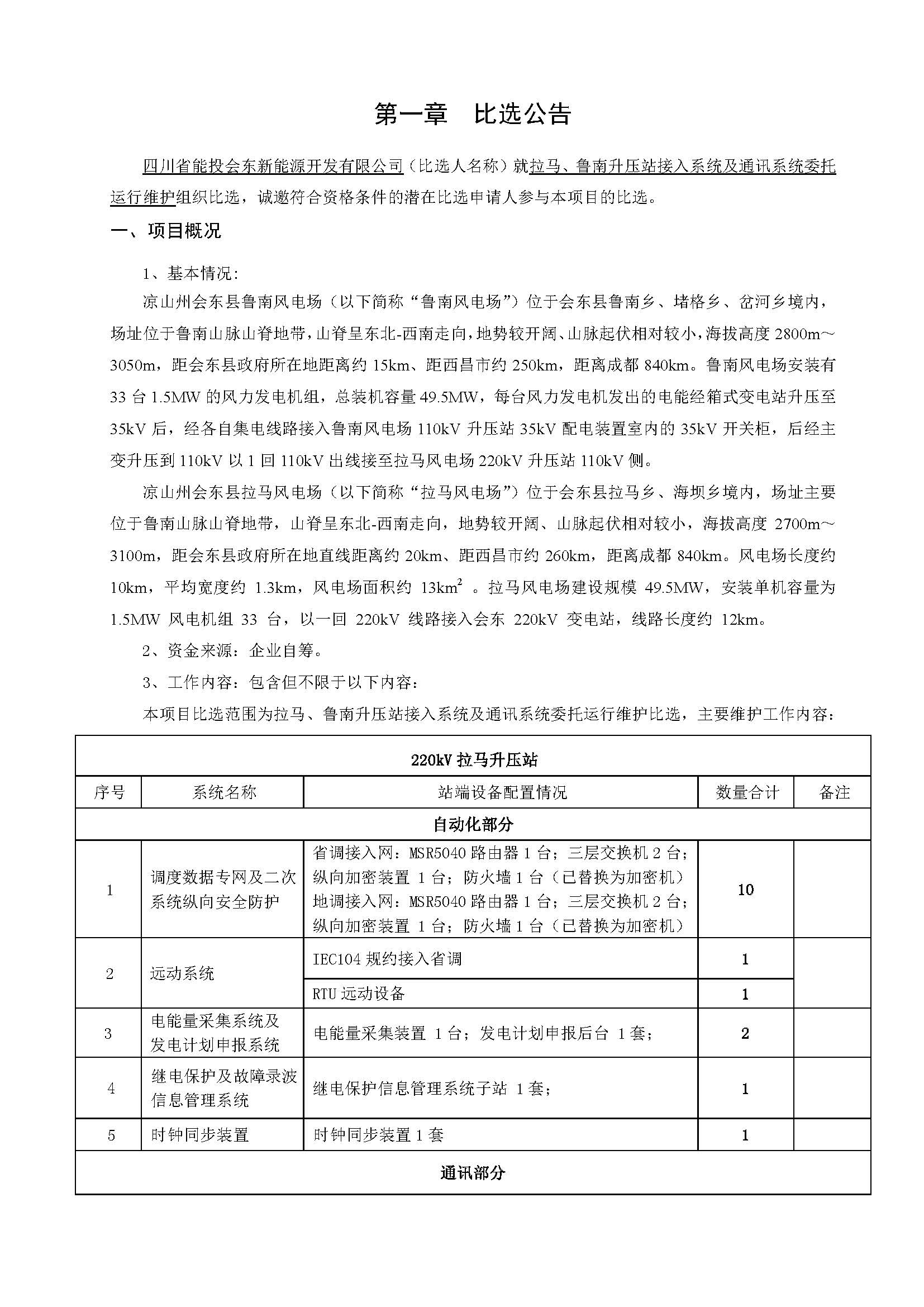四川省能投会东新能源开发有限公司(比选人名称)就拉马、鲁南升压站接入系统及通讯系统委托运行维护组织比选,诚邀符合资格条件的潜在比选申请人参与本项目的比选。