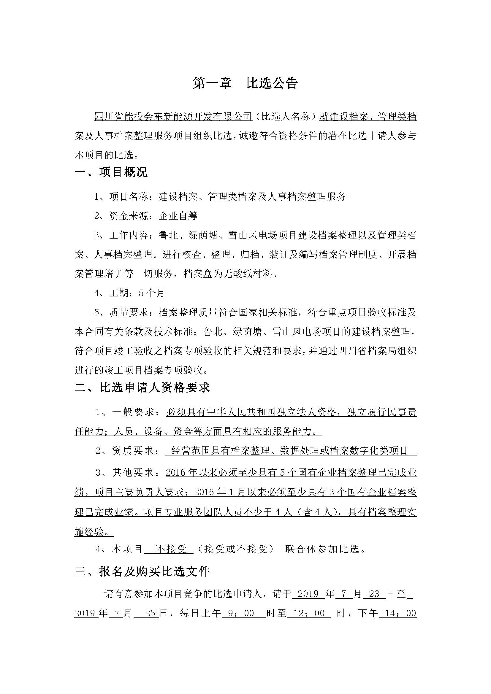 四川省能投会东新能源开发有限公司(比选人名称)就建设档案、管理类档案及人事档案整理服务项目组织比选,诚邀符合资格条件的潜在比选申请人参与本项目的比选。
