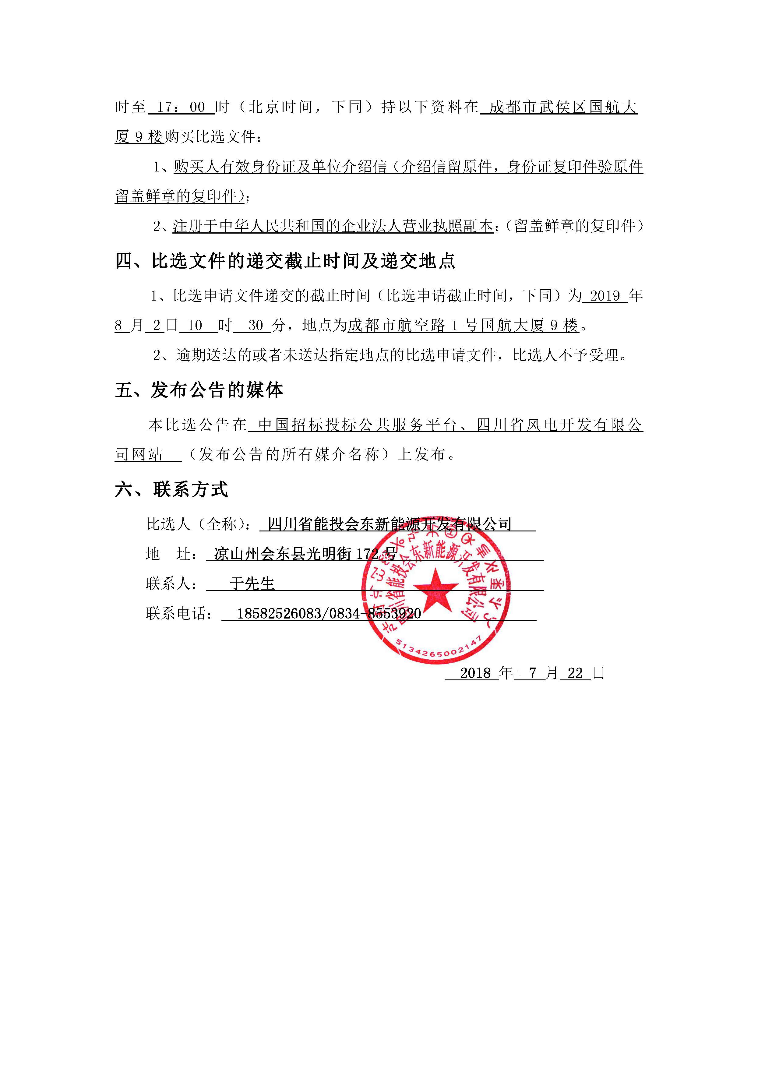 比选人(全称): 四川省能投会东新能源开发有限公司