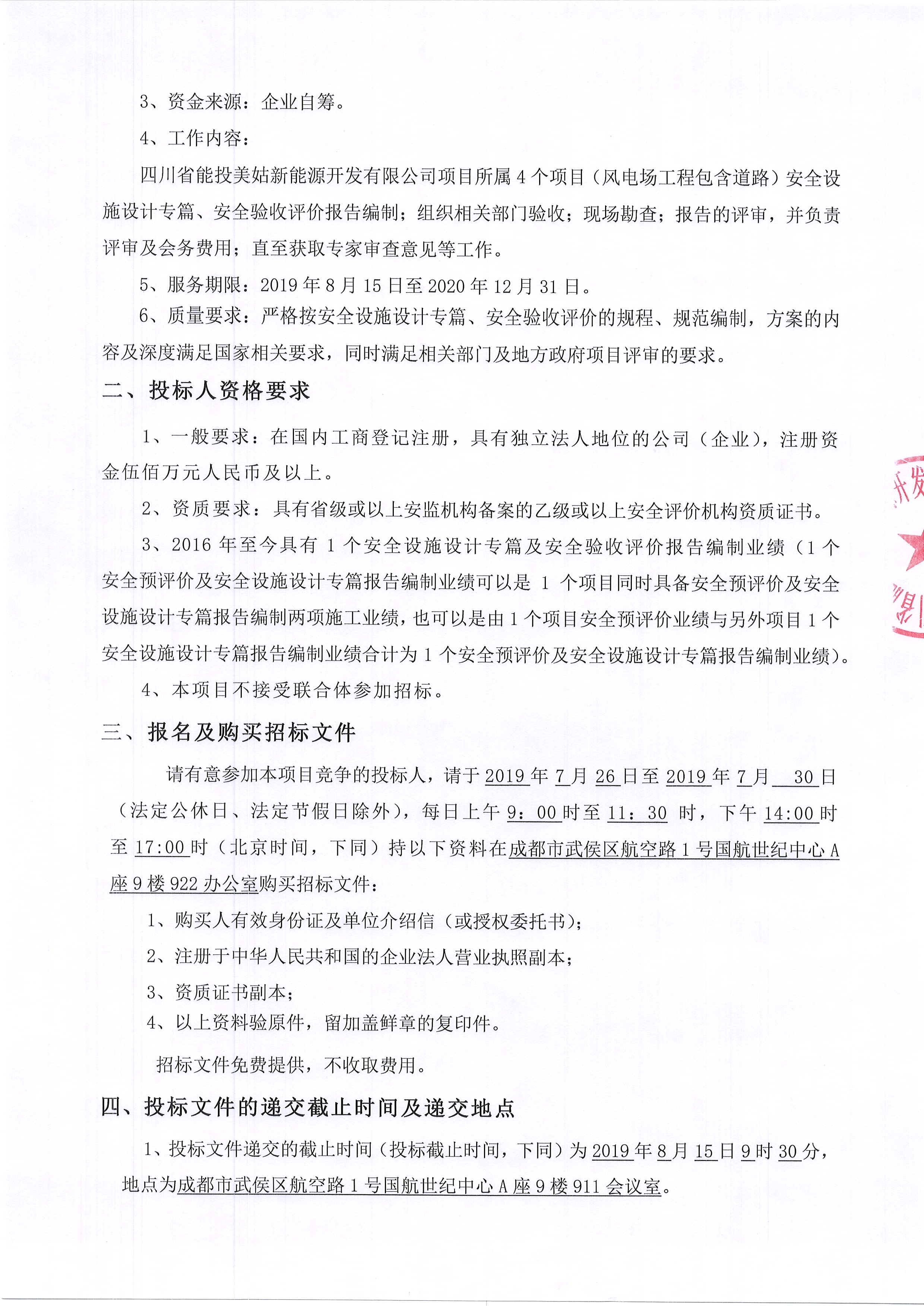 四川省能投美姑新能源开发有限公司就所属工程安全设施设计专篇、安全验收评价项目组织招标,诚邀符合资格条件的潜在投标人参与本项目的投标。