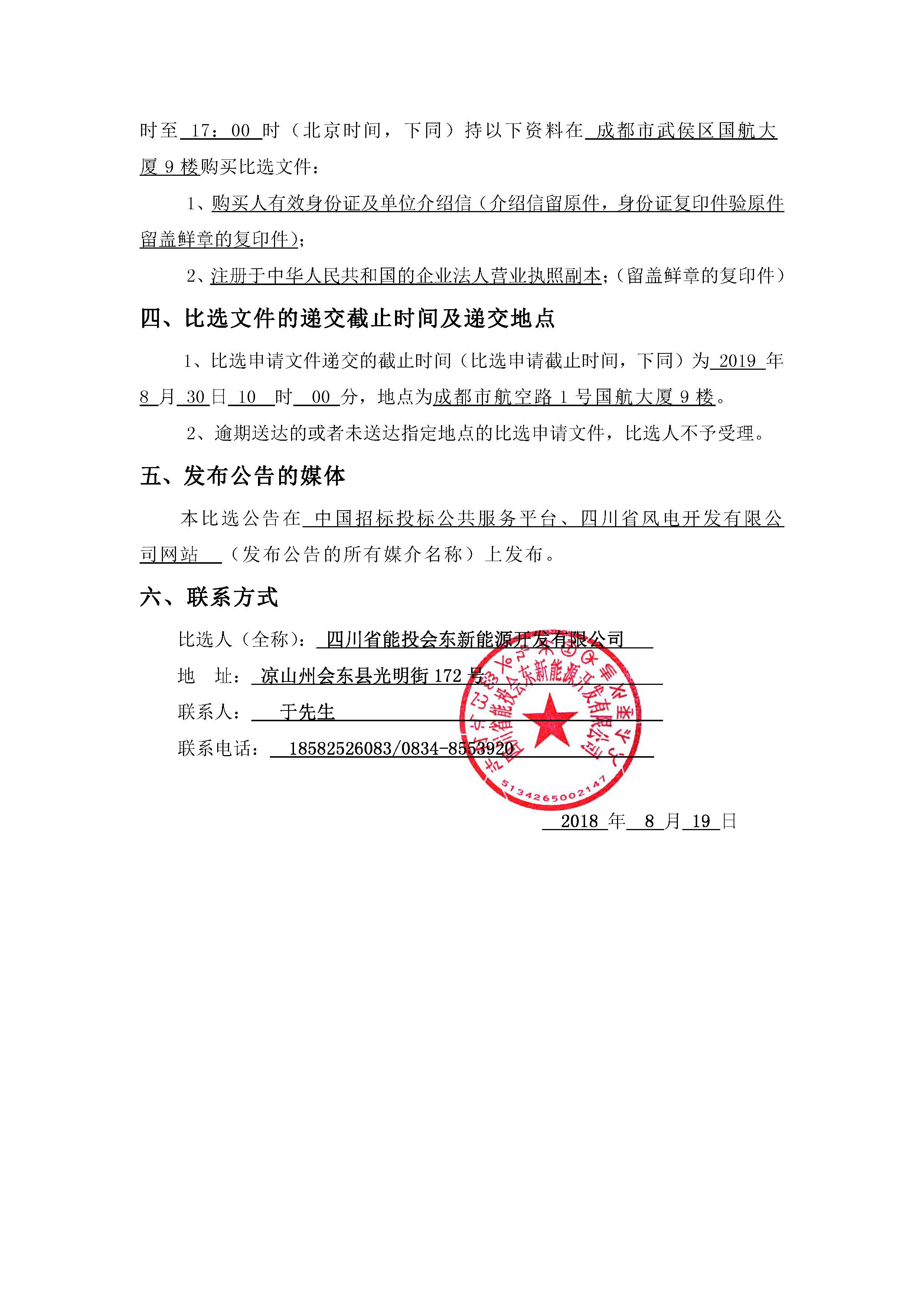 本比选公告在 中国招标投标公共服务平台、四川省风电开发有限公司网站 (发布公告的所有媒介名称)上发布。